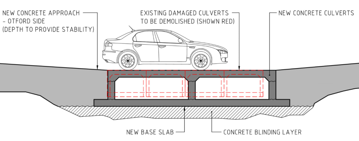 "We’ve shared with the Otford community details of the plan for a replacement causeway on a number of occasions and through different formats. We’ve explained the work that has led to the decision to replace the causeway with a similar design, with improvements to reduce debris blockage and increase user safety, that brings the causeway up to contemporary standards. This includes two reports to Council, media releases, information on our website, social media posts, staff representations at Neighbourhood Forum 1, direct mail outs to local residents and on-site signage.’’
