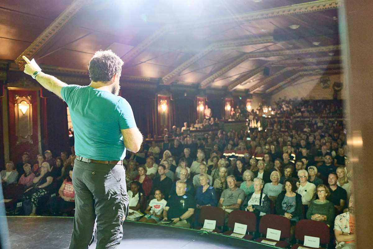 There was a celebratory vibe in the theatre, with an enthusiastic crowd of all ages, from children to retirees, breaking into spontaneous rounds of applause for speakers.