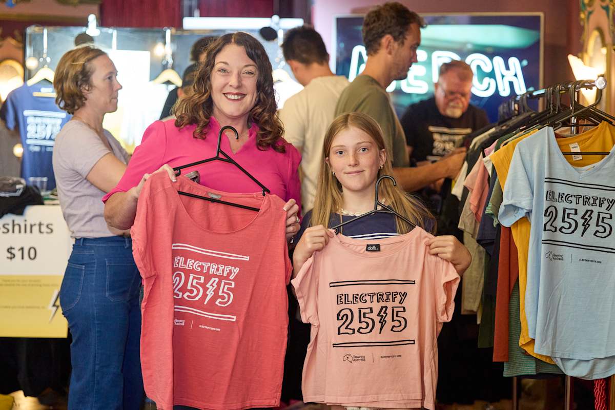 Presenting to a packed house at Thirroul’s live music venue, Rewiring Australia co-founder Dr Saul Griffith donned an Electrify 2515 t-shirt from the preloved range sustainably sourced at local op shops to deliver his keynote address, describing the pilot as a “lighthouse project” and a “world first”.