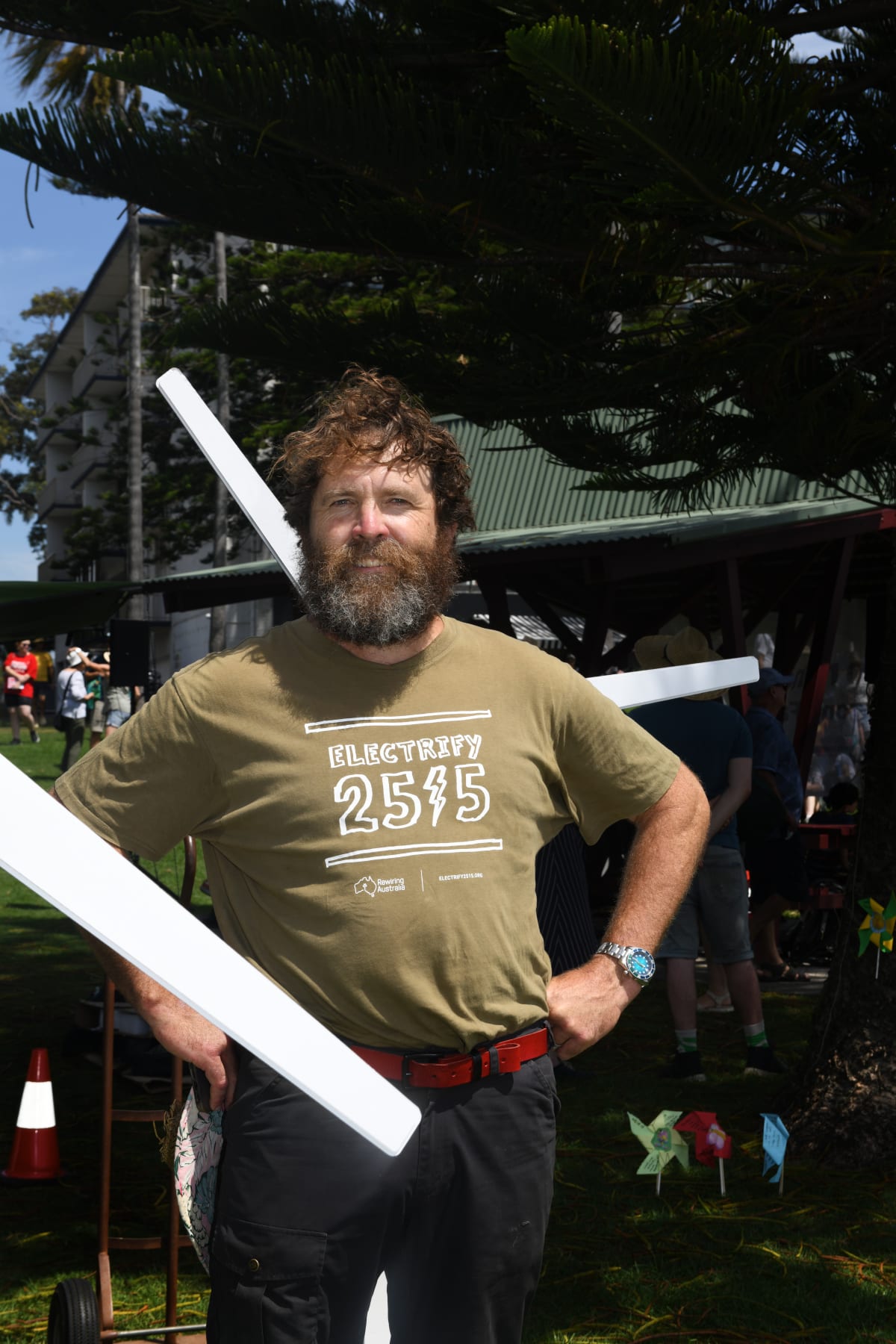 The day's hosts were the Friends of the Earth in alliance with Good for the Gong, the Australian Conservation Foundation, Electrify 2515 and other local organisations, including Flame Tree Co-op, Illawarra Knitting Nannas and Hi Neighbour, the not-for-profit founded by actor Yael Stone to help local workers upskill for renewable jobs.
