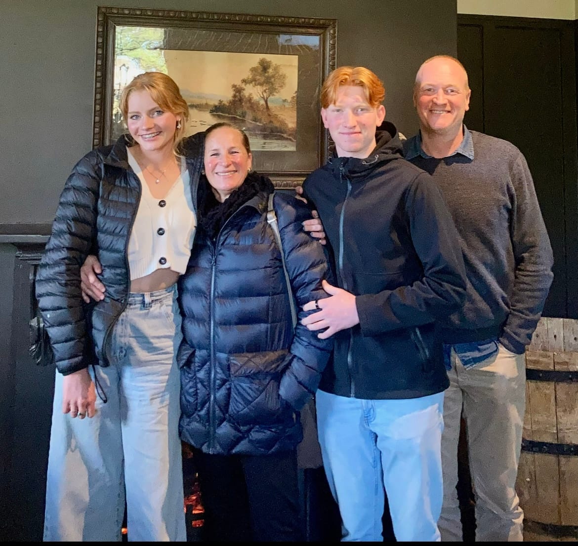 Kuan was an all round sports star representing at hockey, rugby union and cricket as well as starring at gridiron. Right: A family portrait of Kuan with his sister Kaira, and mum and dad, Jolene and Duncan.