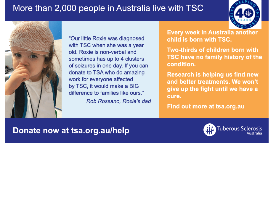 When Lynn was diagnosed most doctors in Australia had not heard of Tuberous Sclerosis and families were instructed to write to doctors in England to get information on this rare disease. Lynn’s vision and hard work changed all that.