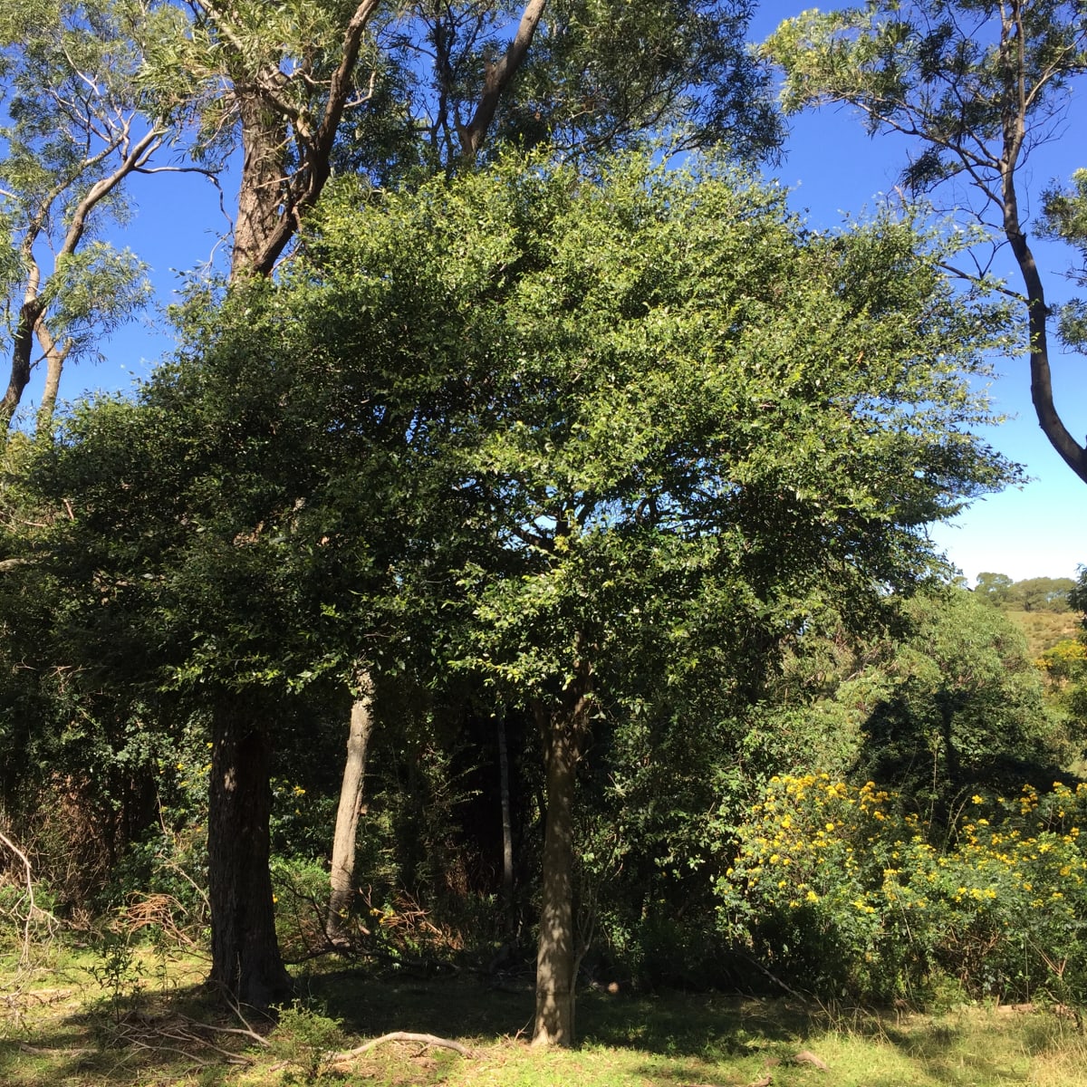 One absolute classic in the genre is the Whalebone Tree (or Streblus brunonianus), one of the toughest and hardiest of all the local rainforest trees. It's looking absolutely fabulous right now around the place, with its glossy green pointed leaves showing barely a droop even in the sunniest spots.