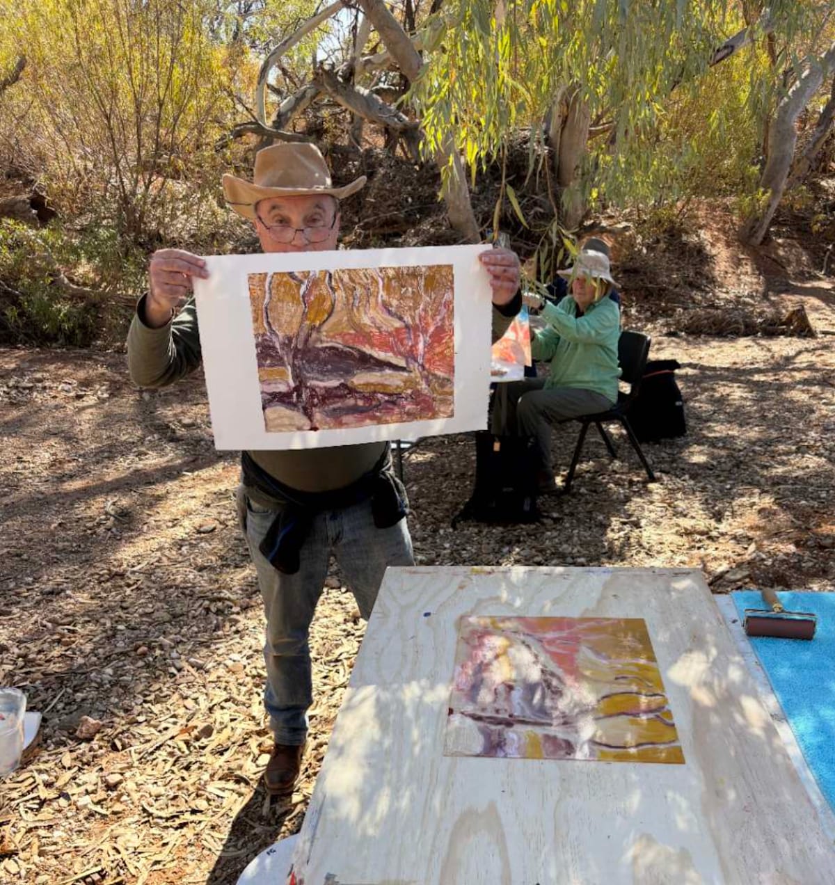 I enjoy experiencing other cultures and seeing the world and I am sure growing up with my mother working as a travel agent and my father a textile agent influenced this. I usually organise three to four art tours each year. July’s tour to Fowlers Gap included painting, drawing, printmaking and ceramics workshops, and artists were given their own studio space to work from. Many of the workshops were held outdoors.