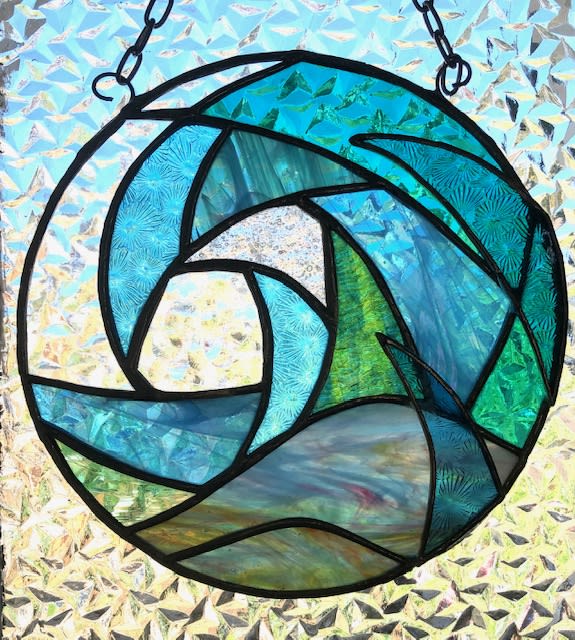 Trish found inspiration from opportunities to see glassworks from masters in other countries such as the beautiful Morse museum in Florida with its amazing lamps and panels by the famed Tiffany and his contemporaries, and Japan’s Tomoya Imasu, who creates intricate sculptural pieces inspired by natural forms.