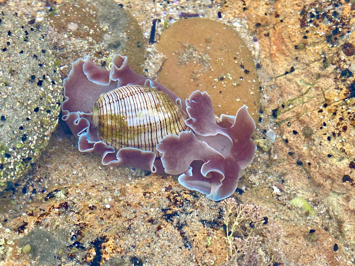 After such a long time away, we really got in the spirit and scoured what felt like every single body of water from one side of the point to the other. First cab off the rank was a beautiful, and quite large, Rose Petal Bubble Snail. Despite their delicate frills and paper-thin shell, they’re actually carnivores eating bristle worms and mussels. They spend their time mostly in shallow water and burrowing sand so look in pools with a decent amount of sand. Their breeding season, summer to autumn, is the perfect time to spot them.