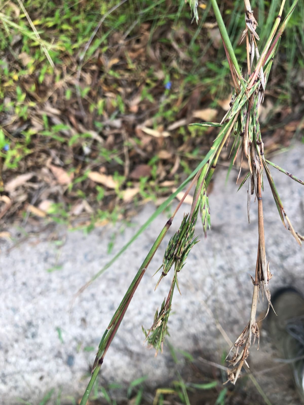 An interesting feature of Barbed Wire Grass is the lemony-slash-gingery scent of its leaves when crushed. It's not strong but it is distinctive and quite pleasant, and it gives a clue to this species' relationship to the much better-known Cymbopogon citratus, aka Lemongrass, a herb widely used for its citrusy flavour. I have not tried using Barbed Wire Grass leaves as a tea and don't recommend you go pulling leaves off plants by the side of the road to try them out, but I reckon they'd produce a nice, mild-flavoured drink.