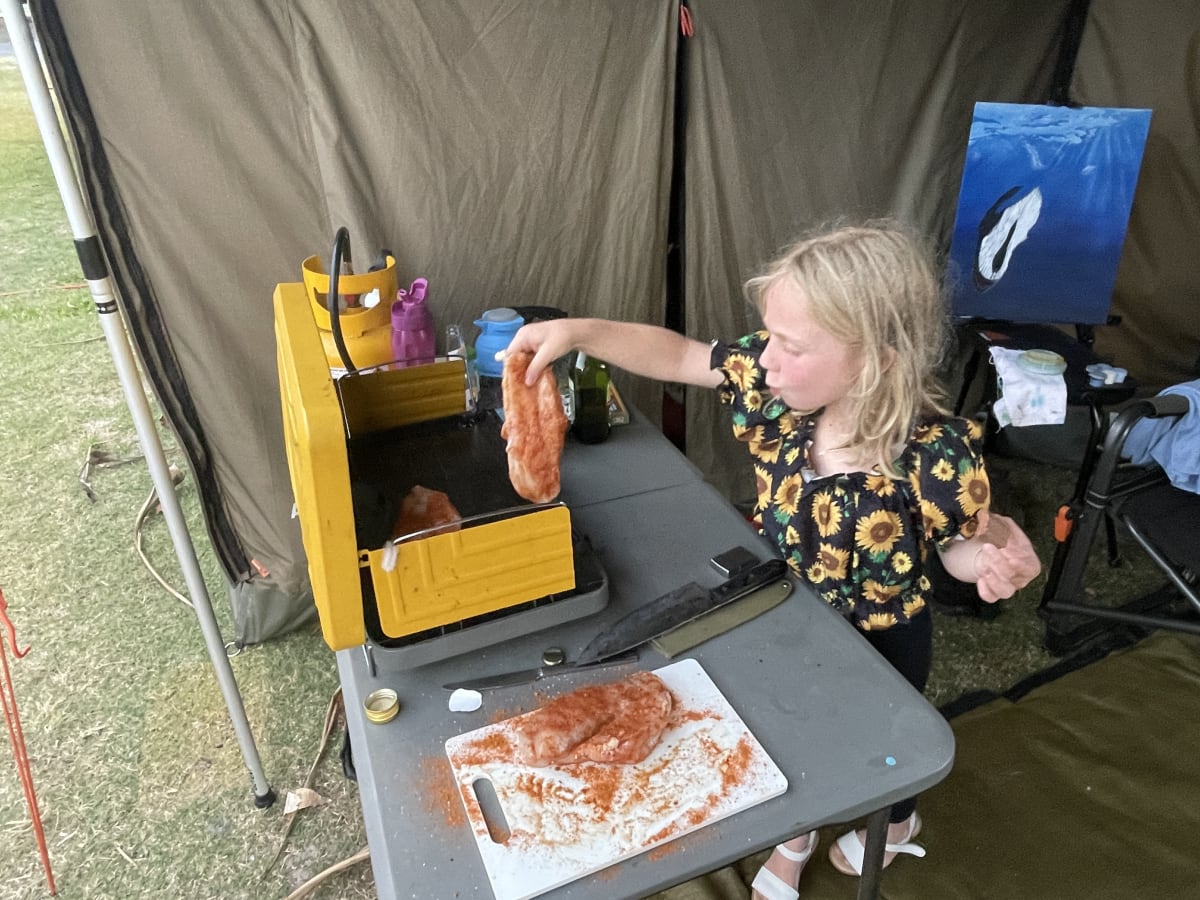 The first time the kids and I caught squid off a jetty on the Eyre Peninsula then raced back to camp to cook fresh calamari stands out. So does the aforementioned spit-roasted chicken we had late one night on a trip with all our friends and what seemed like hundreds of kids.