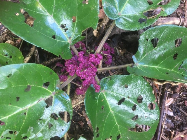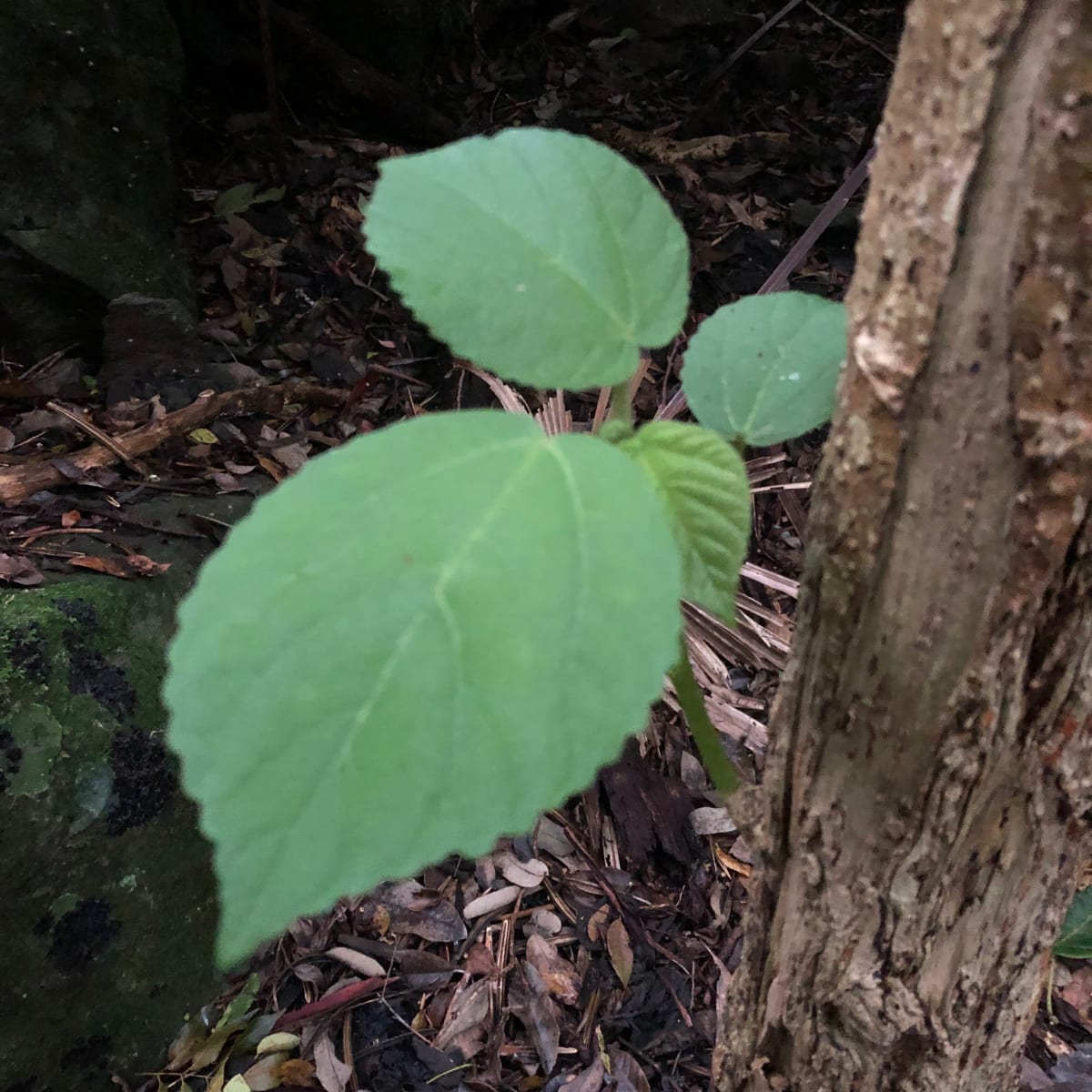 The trunk is an exception, and the soft almost-corky looking bark poses little risk to the touch. But, unfortunately for us humans who like to clear a path to walk, damaging a trunk or exposed root of a Giant Stinging Tree often prompts the tree to respond by putting out new shoots and leaves, covered with those problematic hairs.