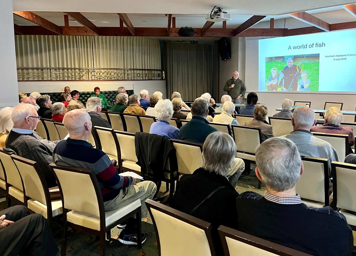 In his Probus presentation, Duncan shared a history of his “journey through fish”, which began when his family emigrated as Ten Pound Poms in the mid-1960s. Both his parents were doctors, and his mum ran baby health clinics for Wollongong Council.