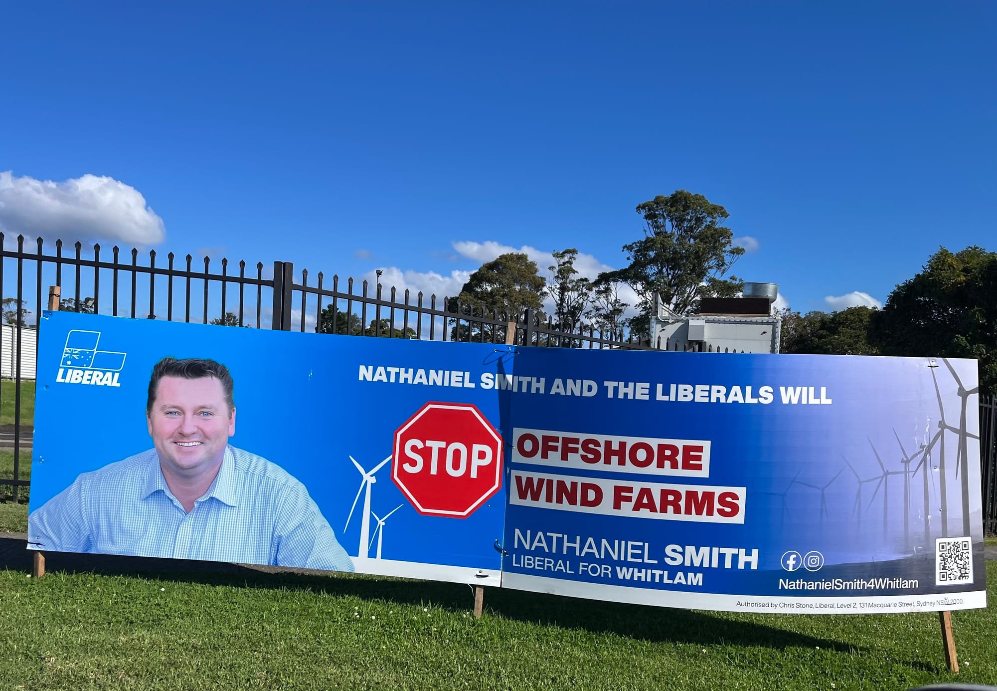 "Stop Offshore Wind Farms" was a key slogan for local Liberal candidates at the 2025 federal election. Photos: Illawarra Flame