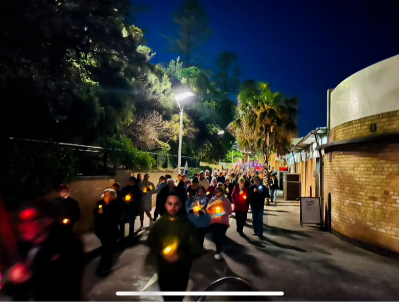Thursday night's moving candlelight vigil on a cold, windy evening was organised by the South Coast Labour Council under the banner, "Let Gaza Live".