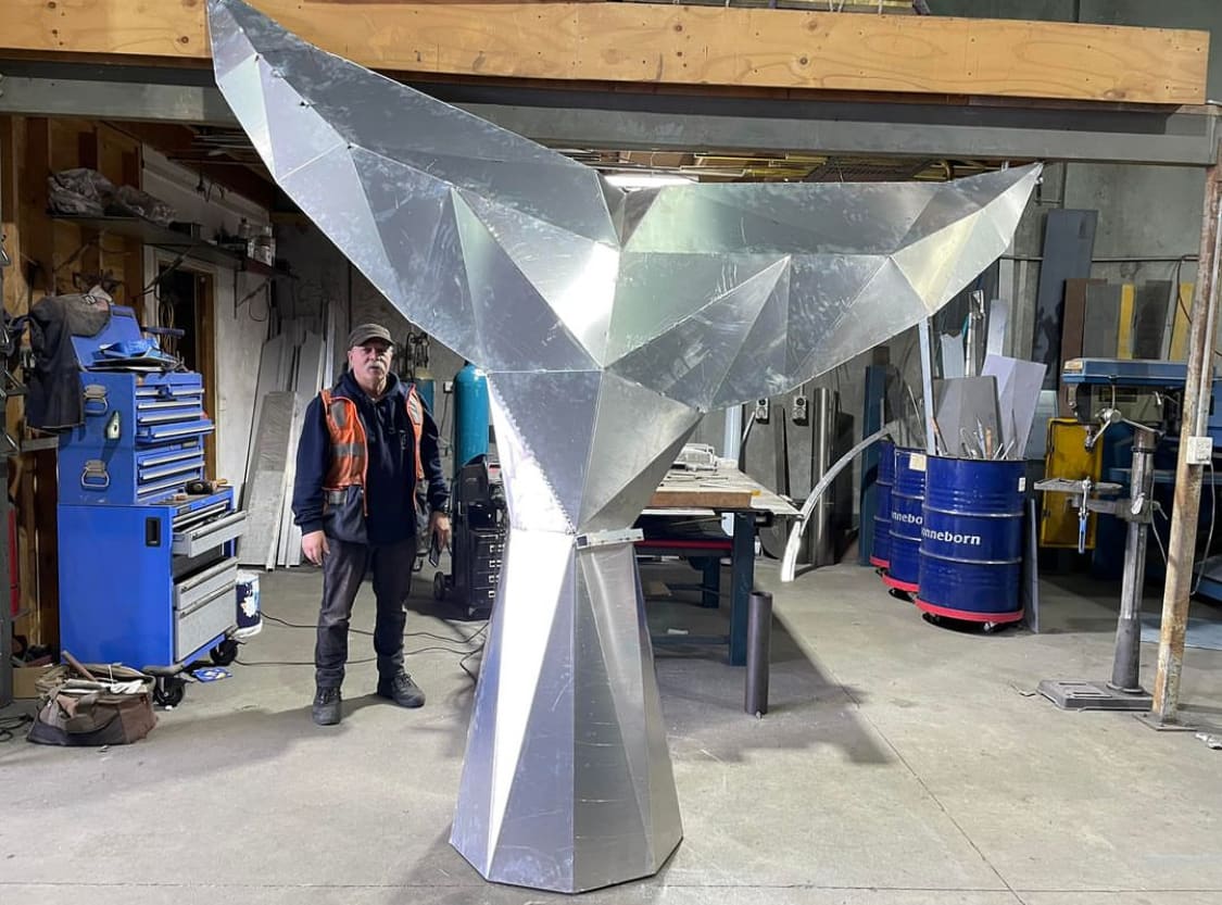 Carla said, “There are so many people involved in the creation of a work like this, from the 3D CAD designer who made sense of my crude clay whale tails, to the fabricator who makes all of my work, to the painting company and the printers who did various tests to find the best approach to putting photos on the tails, the engineer who gave us many headaches, the concreters and landscapers, the council staff who oversaw the project.”