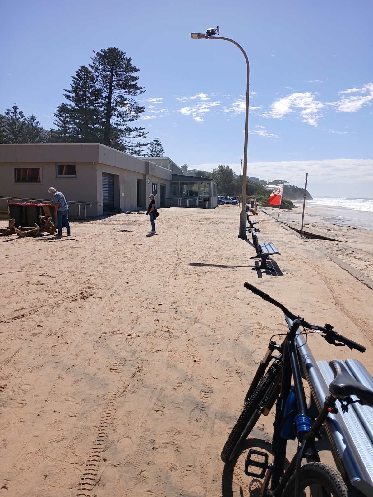 Austinmer, Thirroul and Port Kembla Beach carparks looked more like a beach with large deposits of sand covering the bitumen.