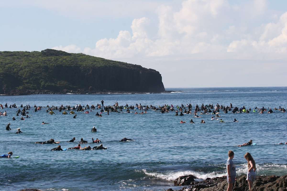 Last May the surfing and ocean-loving community came together for a paddle out at the Farm in Killalea State Park to oppose the proposed tourist park development on sacred Dharawal land… and we won!