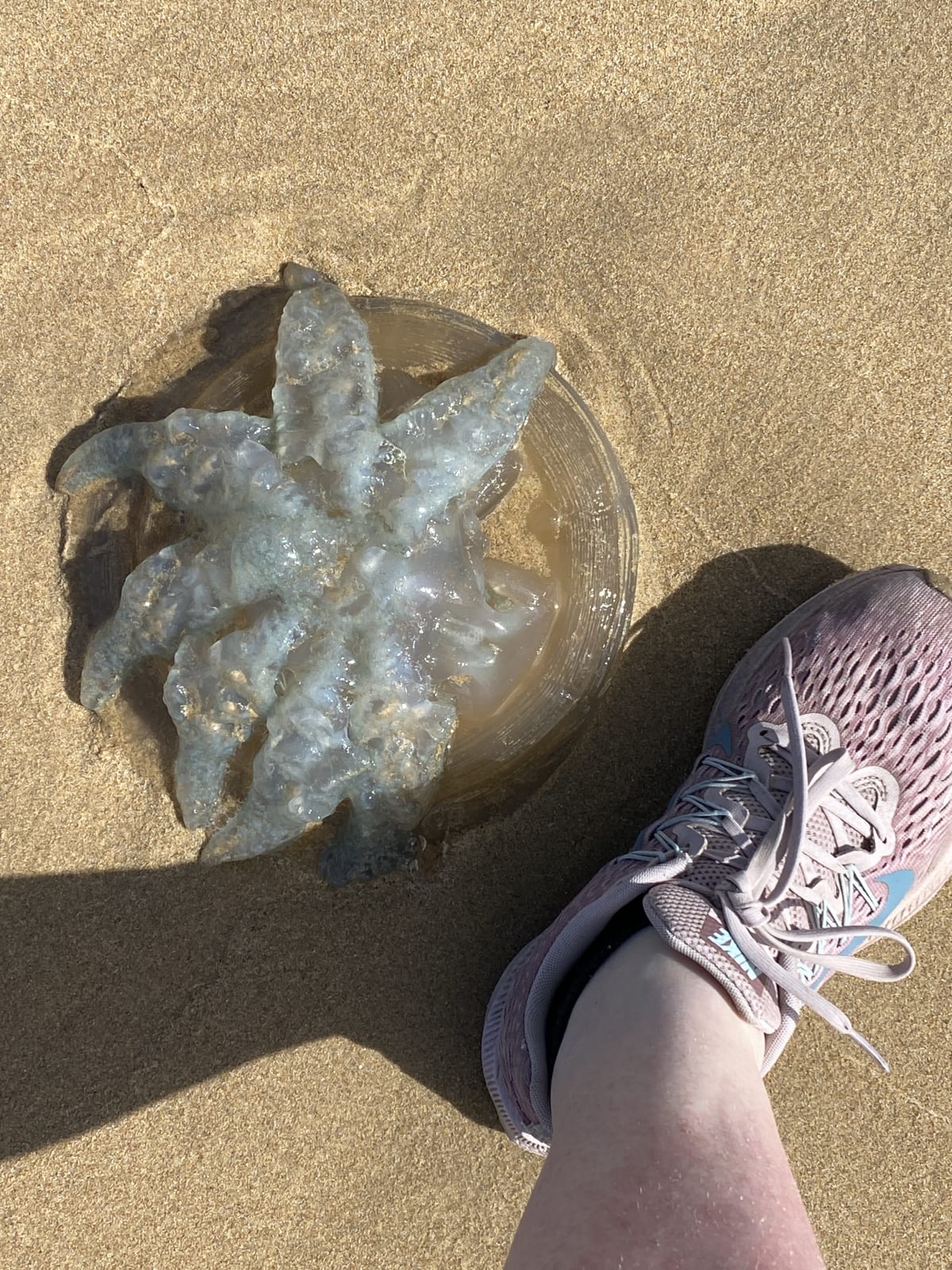 If you’ve been doing some beach-combing over the past few weeks, you may have noticed quite a few of these washed up with the tide. If you’ve been especially lucky like I was, you may have found some still alive in rockpools, and watched their mesmerising way of moving, their mushroom-like bell pulsing gently underneath the water.