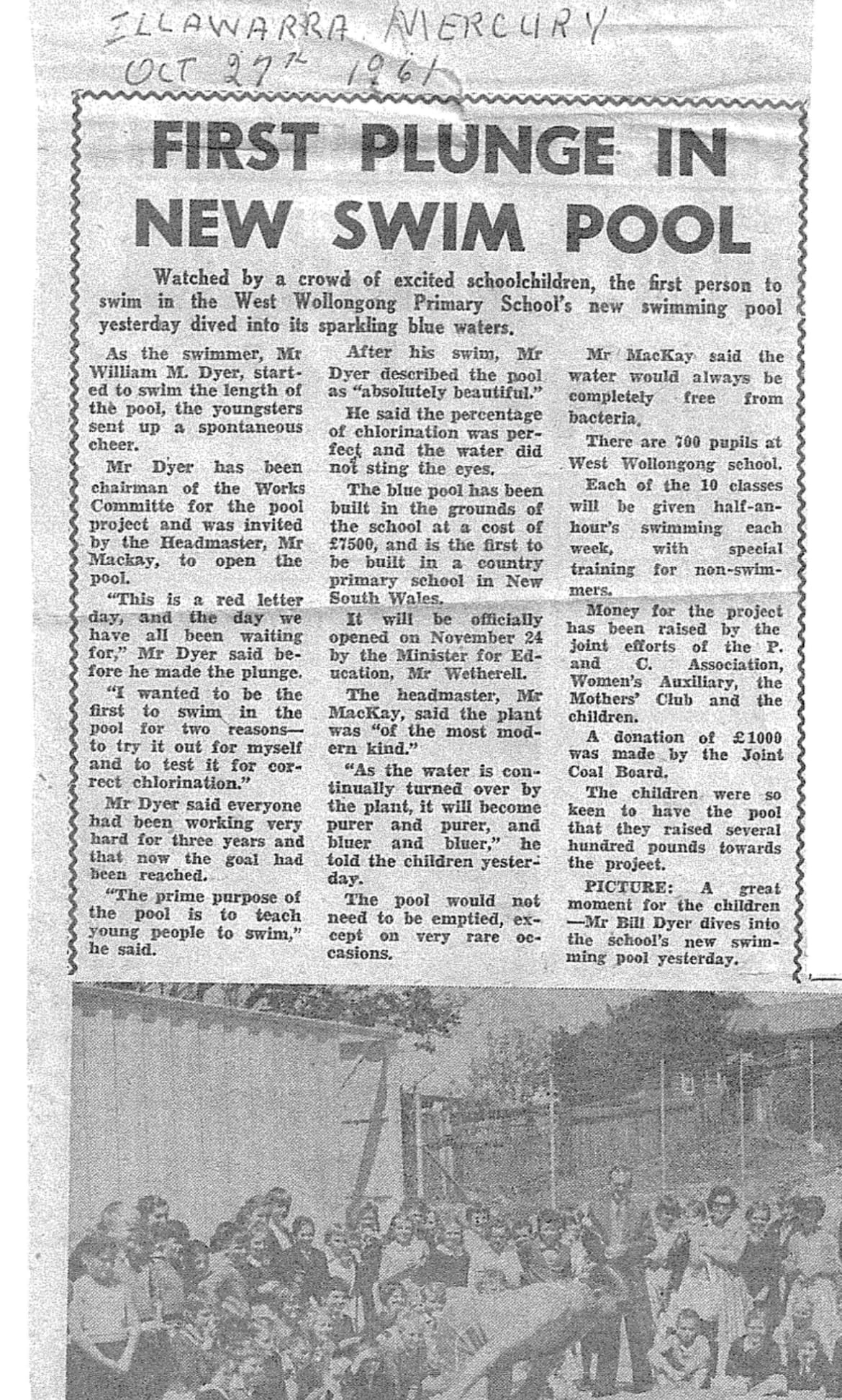 Branka's former teacher, John De Agnoli, spent eight years at West Wollongong between 1976 to 1984. "When it was established, a pool at a school was quite unique with the community getting together to raise the money to build it."