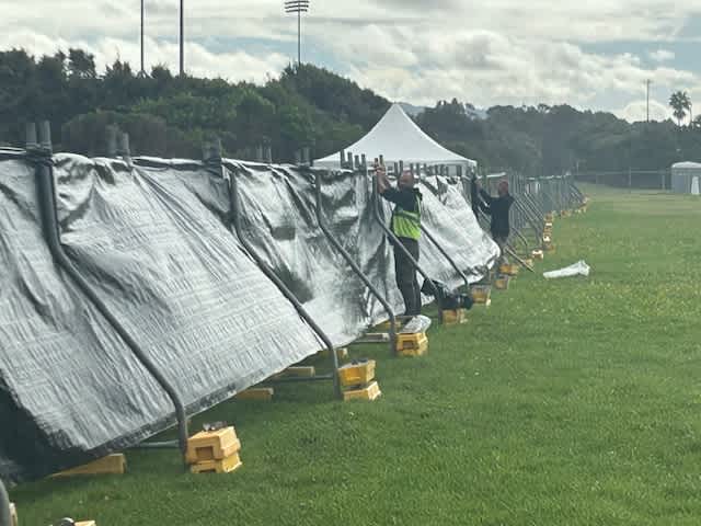 Fencing has been erected around the perimeter and portaloos and staging has started arriving on site.