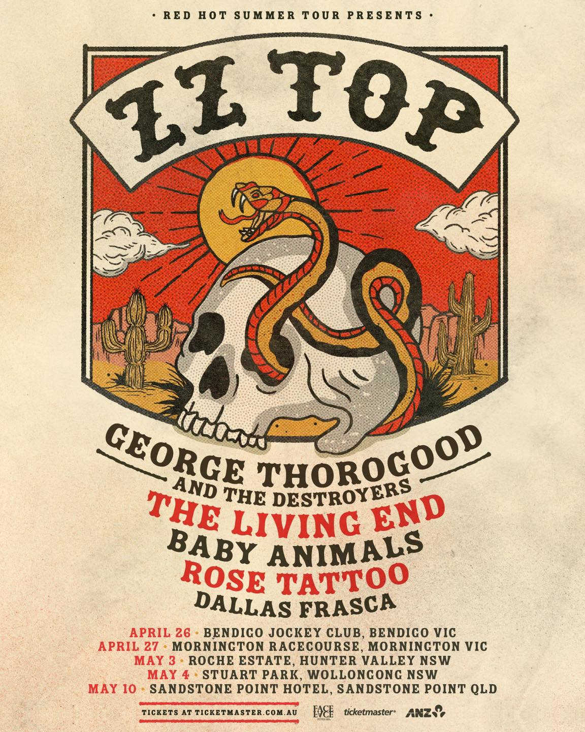 Ironically, the national tour is called the ‘Red Hot Summer Tour’. Before performing in Wollongong, ZZ Top and a stellar line-up that also includes George Thorogood and The Destroyers are performing in the Hunter Valley.