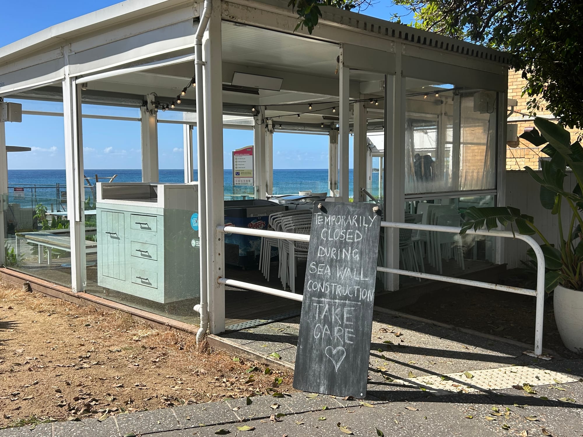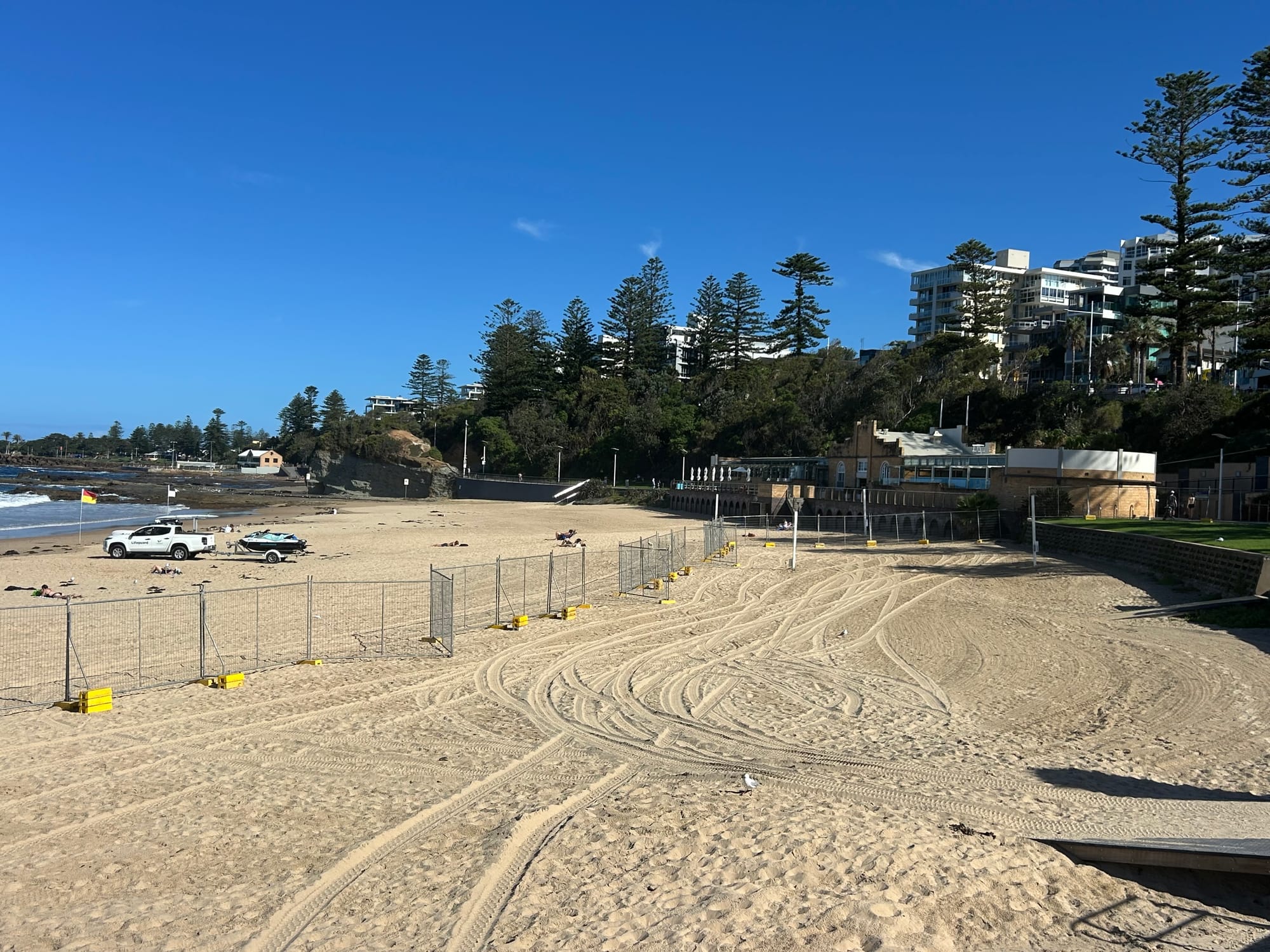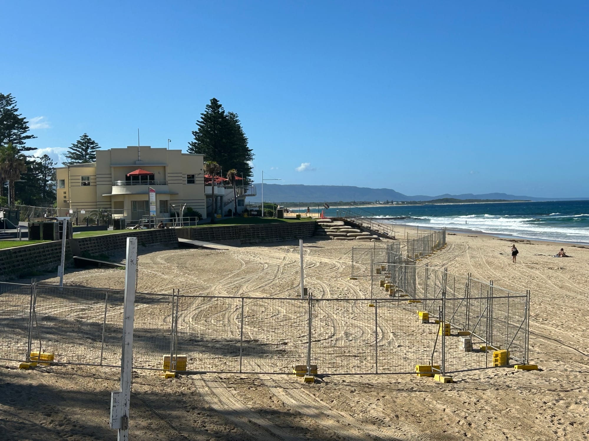 Access to the beach, which will remain patrolled during the construction program, is now from directly in front of the surf club and near the Pavilion Cafe.