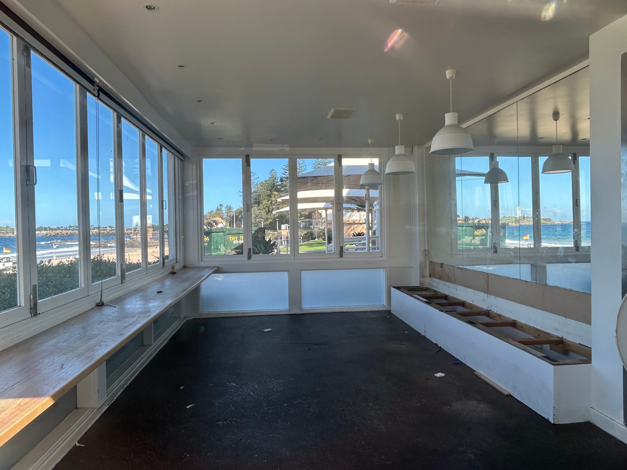 At Diggies, seats and tables and cooking equipment have been cleaned out as the premises prepares for its temporary new role providing accommodation for the seawall construction project team.