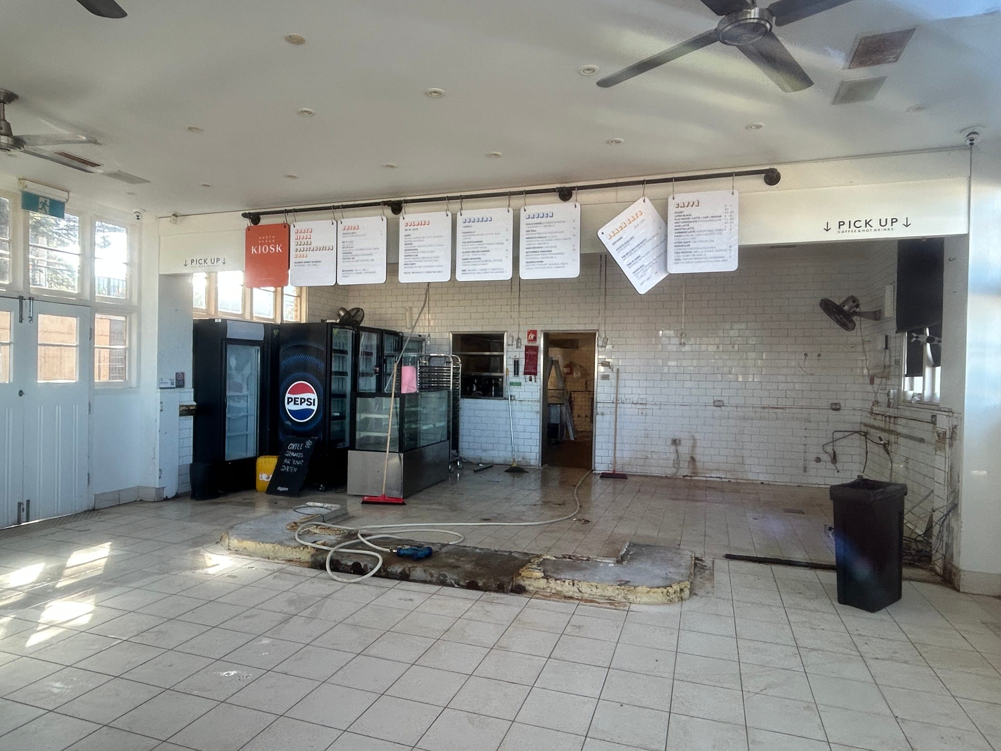 Contractors have been busy on site and the kiosk has quickly been gutted. Gone are the counters, and the serving area is now just a shell.