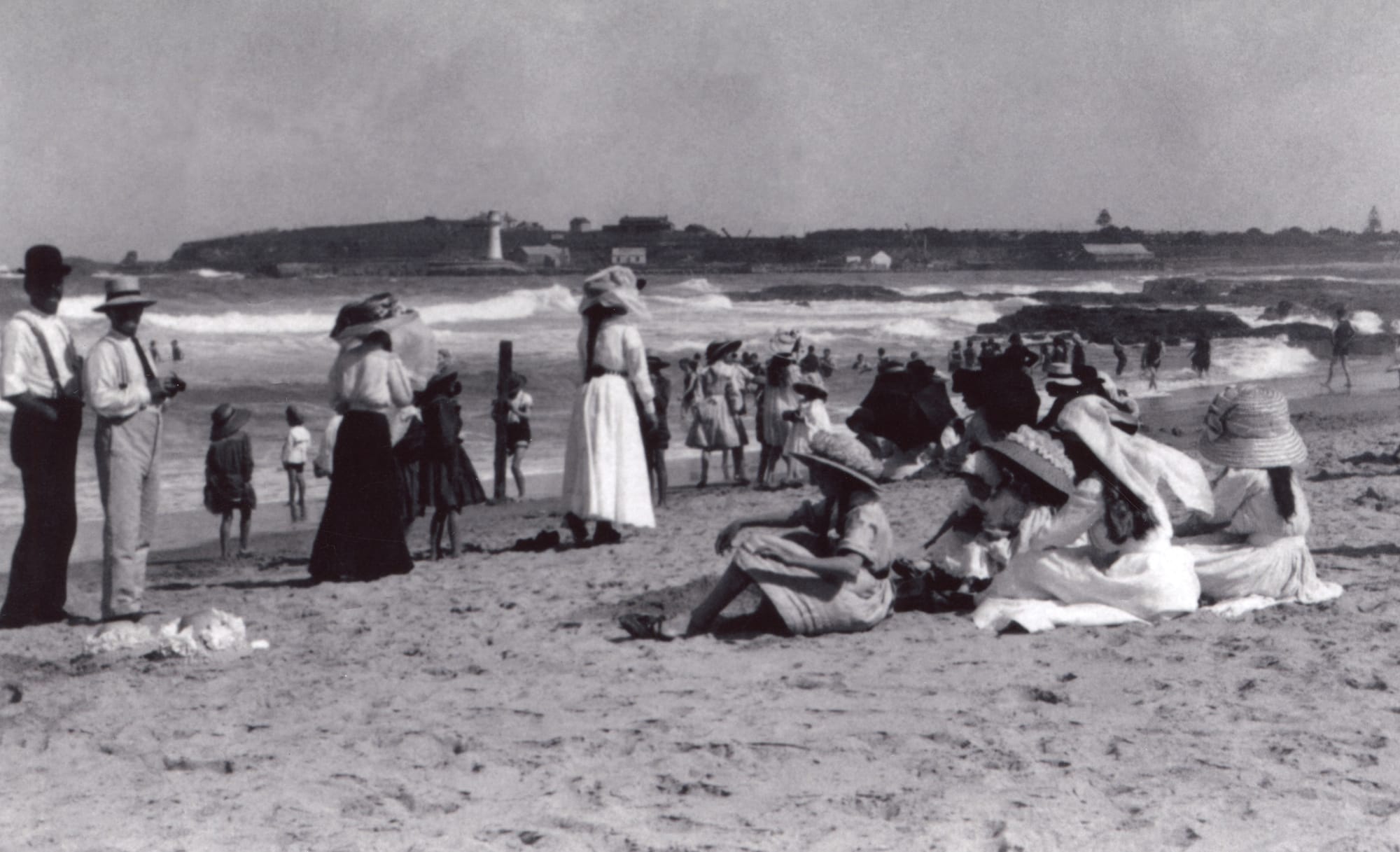 The image above of North Wollongong Beach gives us a glimpse of correct beach attire circa 1900.