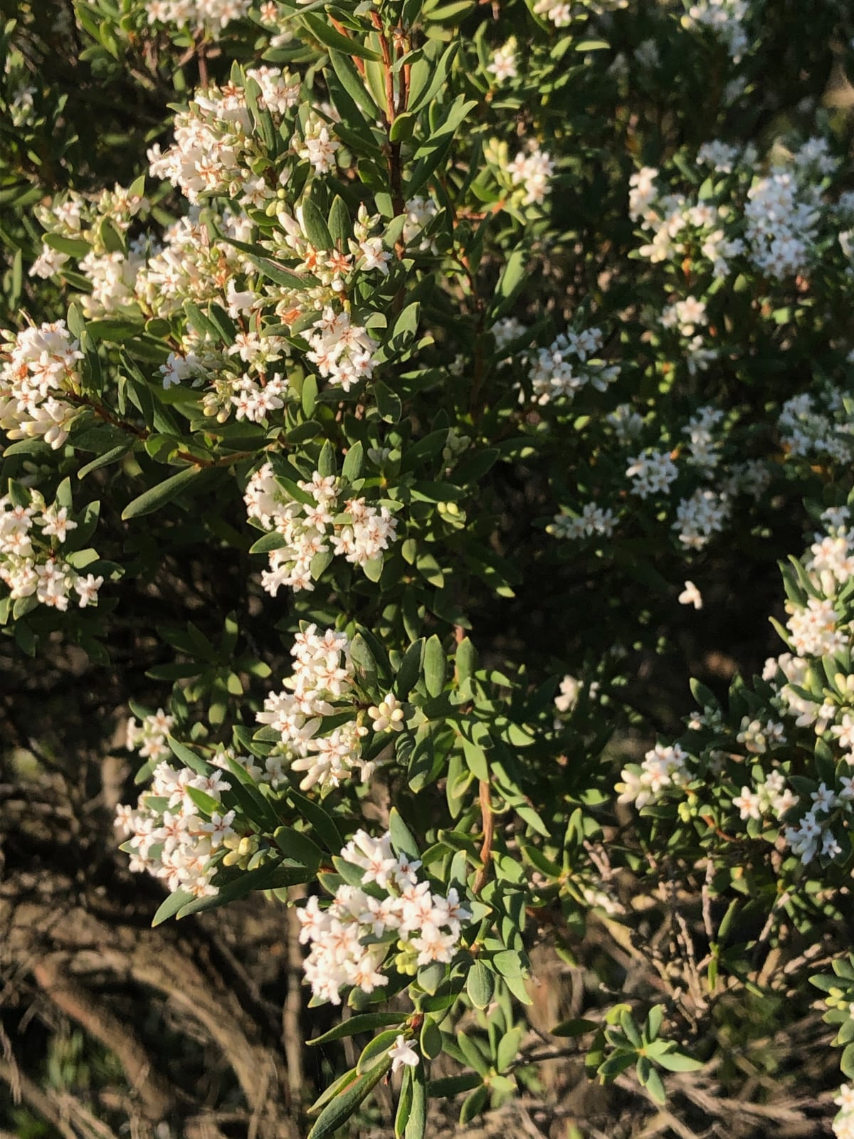 This gorgeous little creature is a Tree Broom-heath (or Monotoca elliptica) and it was no more than 2m tall. I've been watching it for a decade and I don't think it's added more than 10cm in height over that period. And it's just the most beautiful, shapely thing.