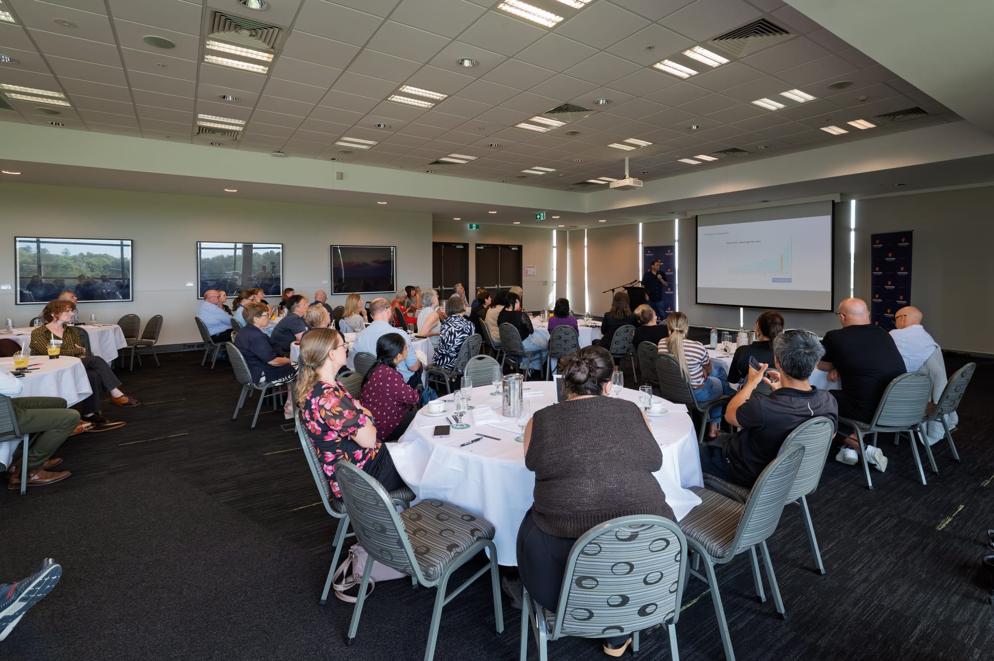 Representatives from 45 organisations gathered to hear from (left to right) Veracity Innovation's Jordan Campbell, the Australia Institute's Matt Grudnoff and CI Group CEO Nicky Sloan.