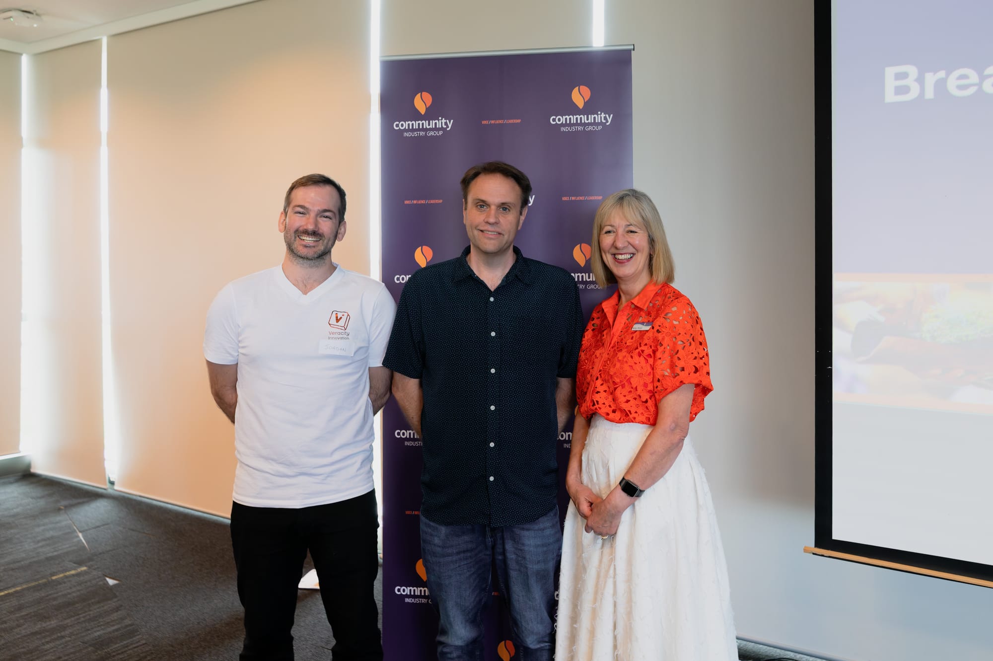 Representatives from 45 organisations gathered to hear from (left to right) Veracity Innovation's Jordan Campbell, the Australia Institute's Matt Grudnoff and CI Group CEO Nicky Sloan.