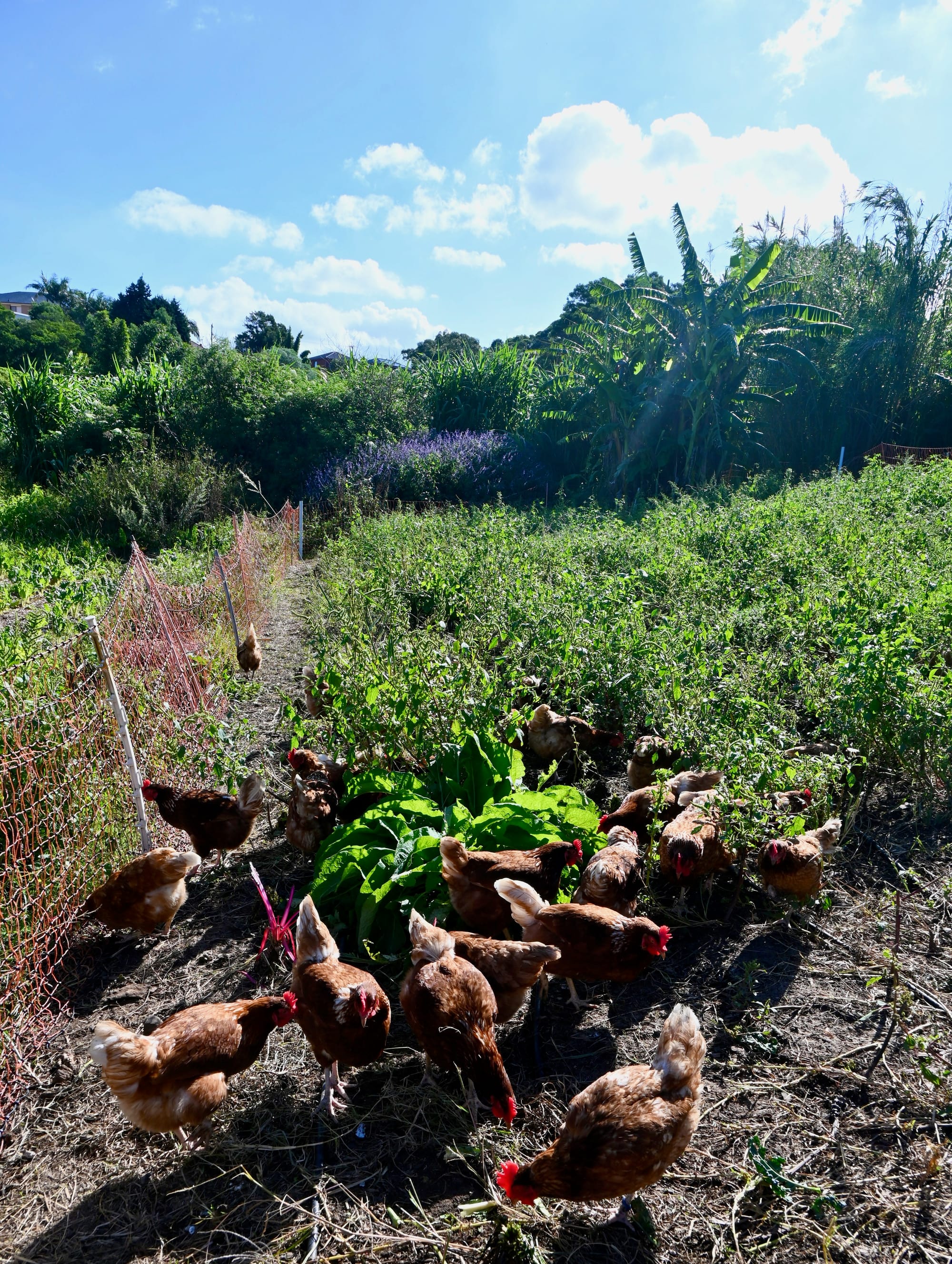 Farm hands – including former refugees, young people and volunteers – use compost and crop rotation to build healthy soil. Grazing goats, pigs and African fat-tail sheep help with land maintenance, as do a free-ranging flock of chickens, while supplying about 25 eggs a day.