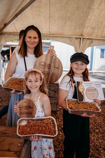 The Horrell family tweaked a recipe from an old Donna Hay book to whip up three very different crumbles, each with a secret twist. Anna and Leila were joint winners of the Junior Crumble competition, while mum Alia Horrell was crowned Open Crumble Champion!