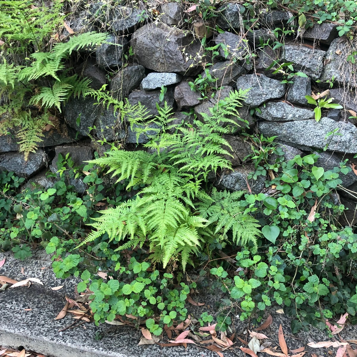 It's a mid-sized fern that looks like a pale and delicate Bracken Fern at first glance, with the most delightful pale green foliage. Despite the recent warm and dry weather, I'm seeing Tender Brake seedlings popping up all over the place, on the edges of rainforest creeks, shady slopes along the escarpment, and even on rock walls in gardens!