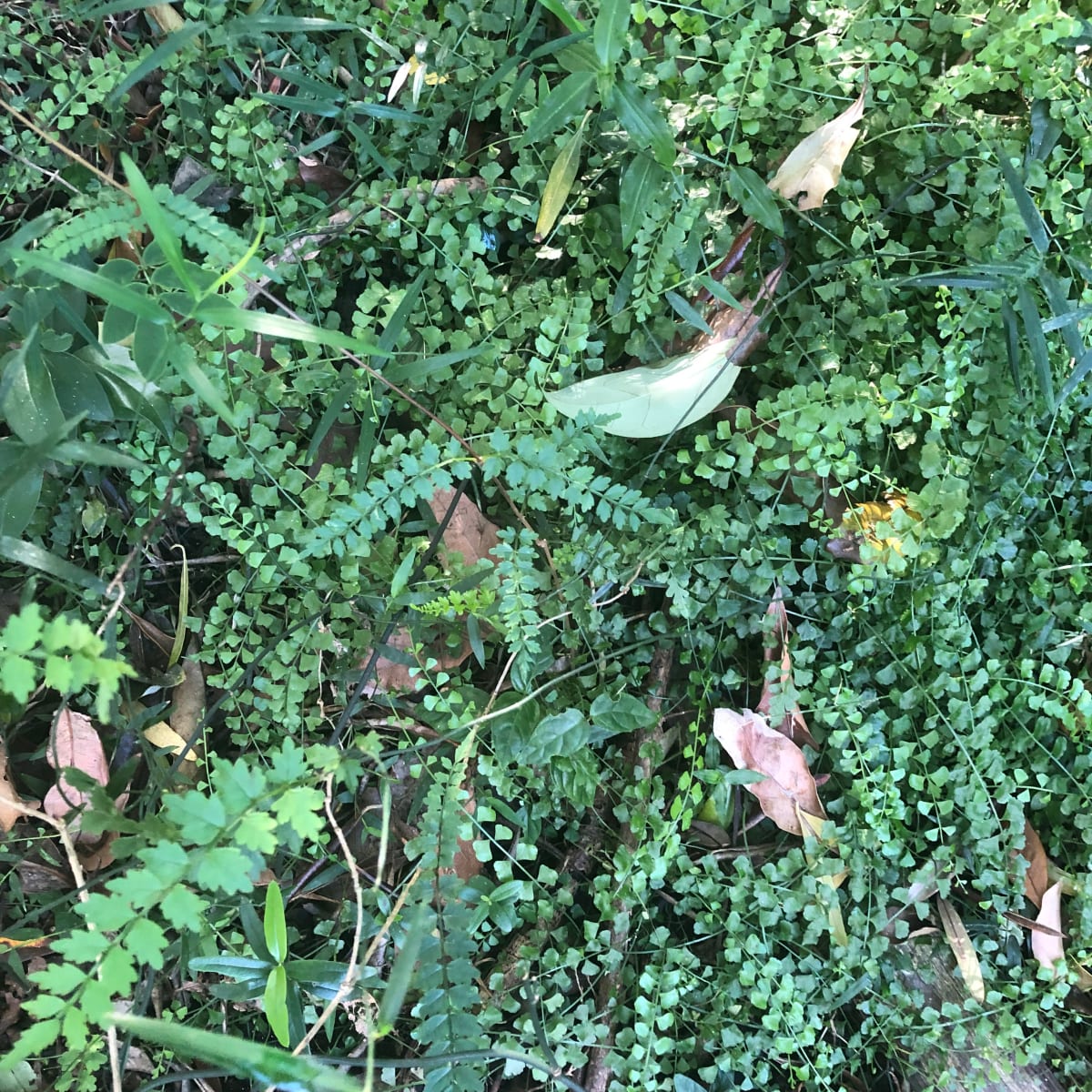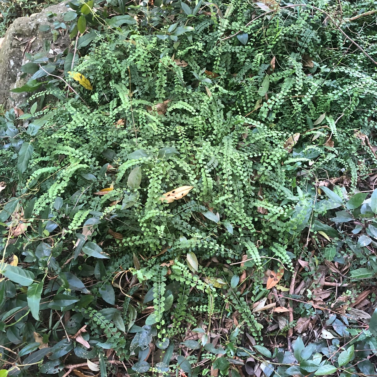 In good conditions, Necklace Fern forms a delicious soft, green shagpile carpet that you just want to lie down in and snuggle, but unfortunately it is too delicate for that sort of treatment. It is also too delicate – apparently – to be cultivated, as I've never seen it anywhere in a nursery. But that's fine: it's worth respecting as one of those plants that will find its own way to where it wants to grow.