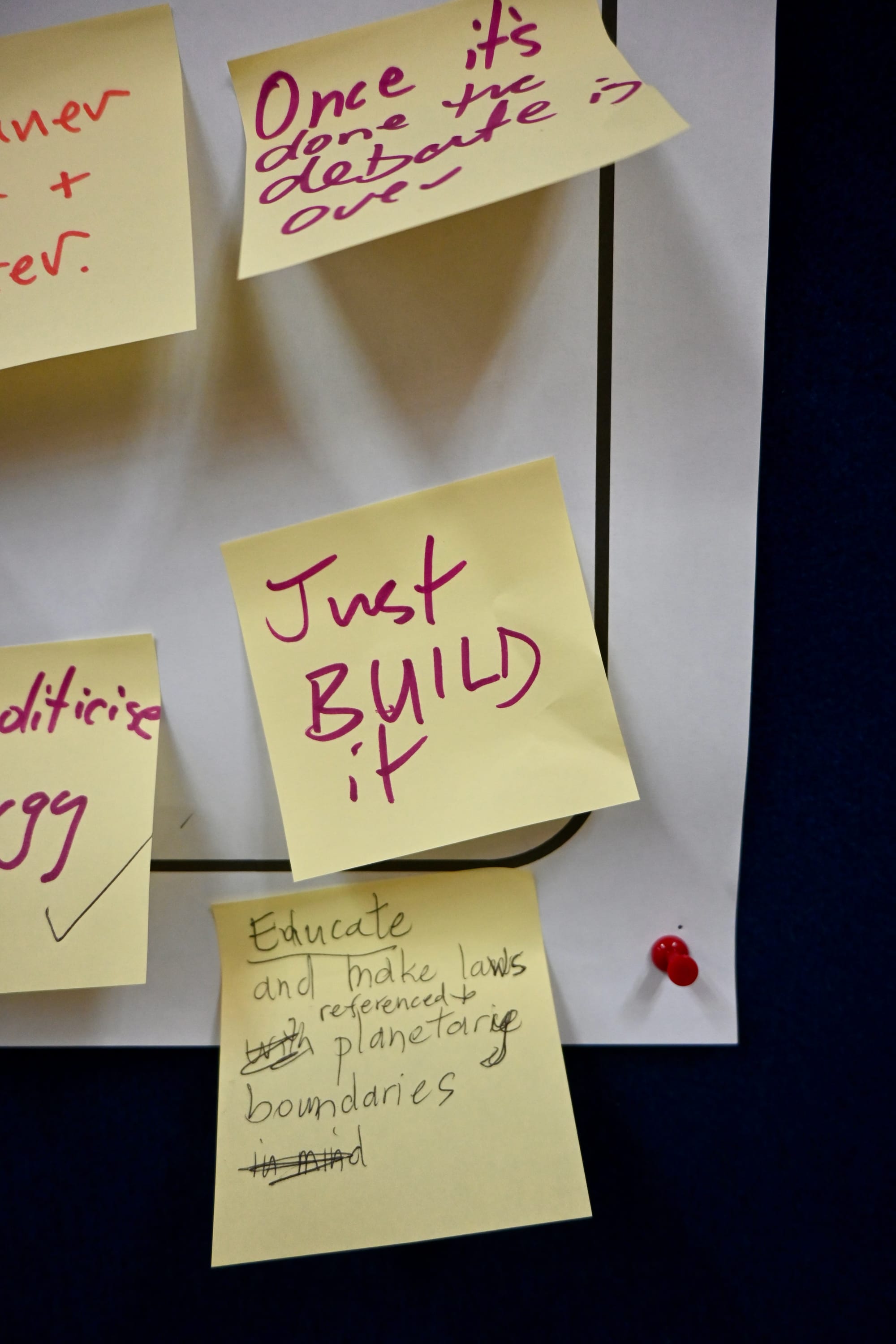 One Post-it created in a group discussion read “Just build it”, summing up a general desire for progress and, on this, Keiraville psychologist Jo Lunn had a suggestion.