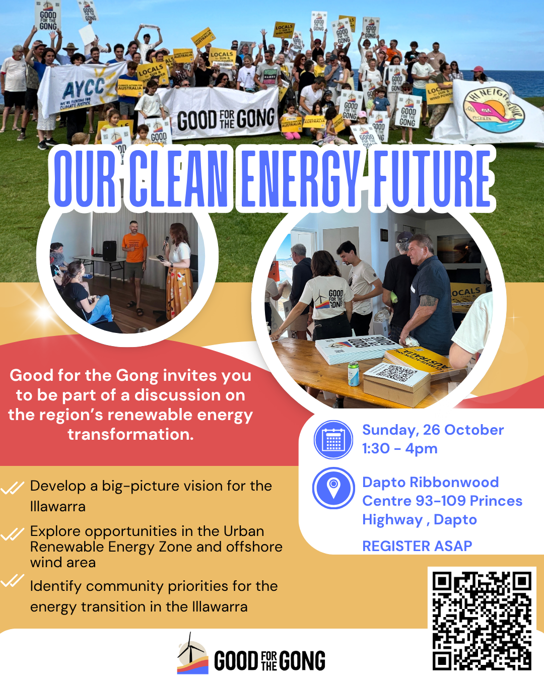 Broaden their horizons to all kinds of clean energy and run a “community vision” workshop was the answer for local group Good for the Gong, which drew about 70 people to its Sunday afternoon workshop at Dapto Ribbonwood Centre on October 26.