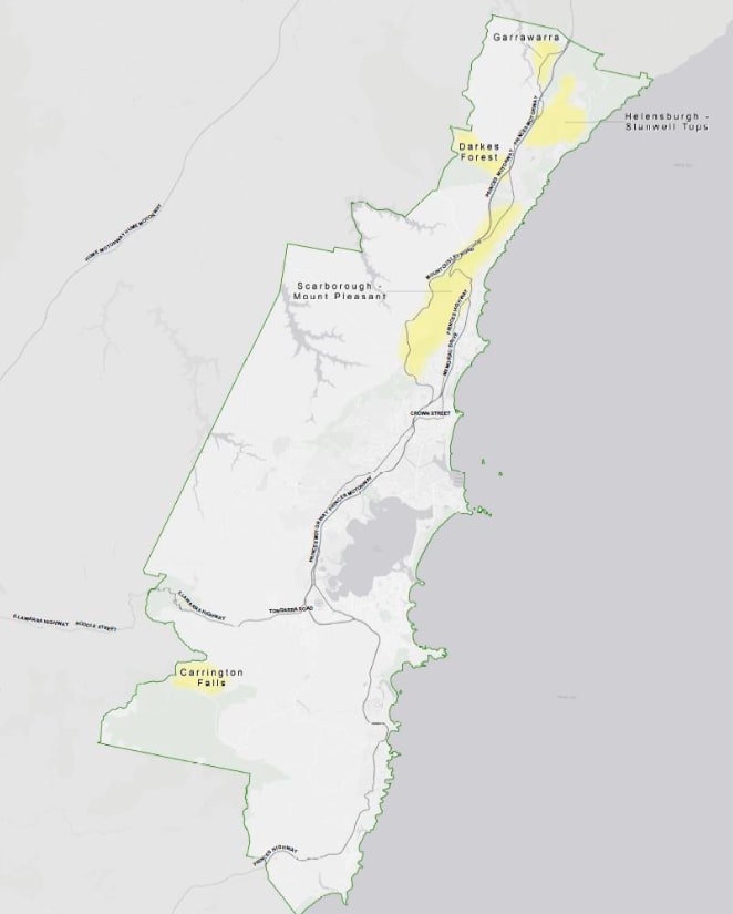 - Scarborough to Mount Pleasant – “The towns contain steep roads, residential homes, schools, hospitals, infrastructure and mining that is extremely vulnerable in the event there is a bushfire, given its location on the escarpment, limited access routes and proximity to the National Park”;