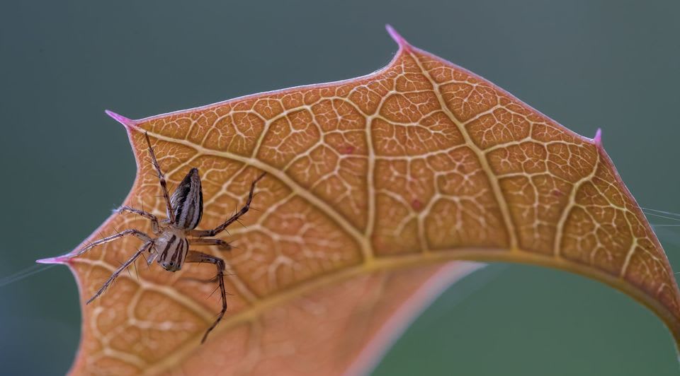 A few different Australian plant species have the common name Native Holly, including the widely cultivated Graptophyllum ilicifolium from the Mackay region in Queensland, and a pretty but very prickly pea plant called Podolobium ilicifolium. Starting to see a pattern in the Latin there? Yep, 'ilicifolium' means holly-leaved in botanical Latin. Prickly leaves are usually good protection for small birds and other critters, and they also harbour little hunters like Lynx (Oxyopidae) and Crab (Thomasidae) Spiders.