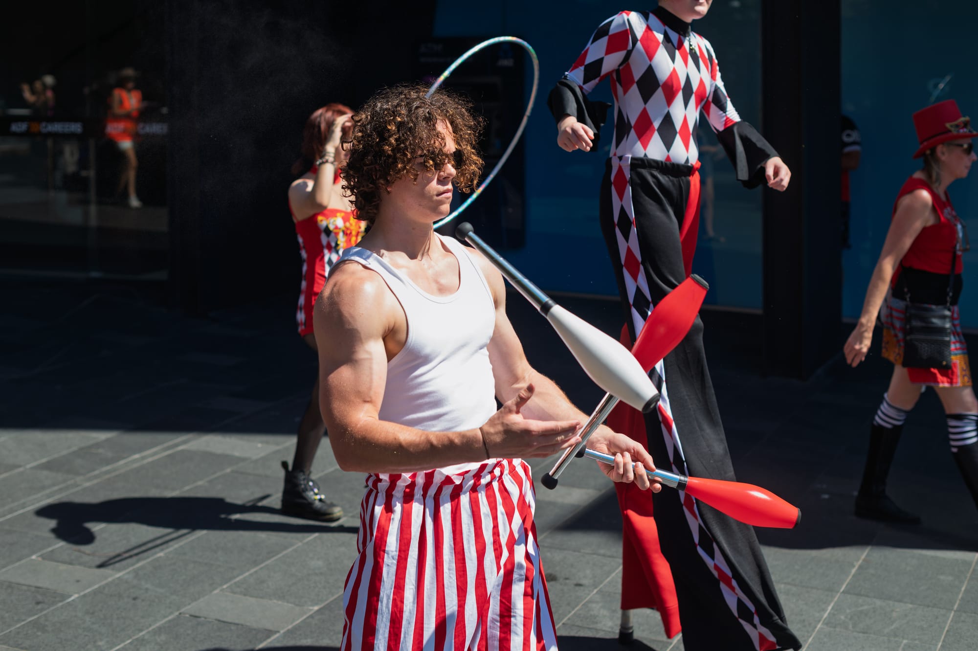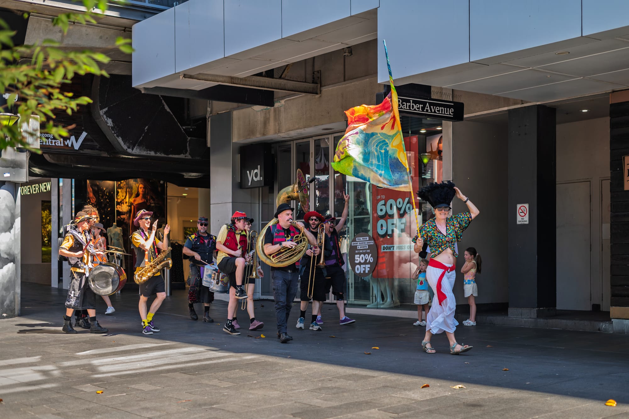 "We are doing a parade around this mall with a bunch of the other artists for Honk Oz. We've travelled all the way from Perth for this. Yesterday we did a performance at the Servo down in Port Kembla - really fun vibe, a really big community presence. People got into it. It was really fun."