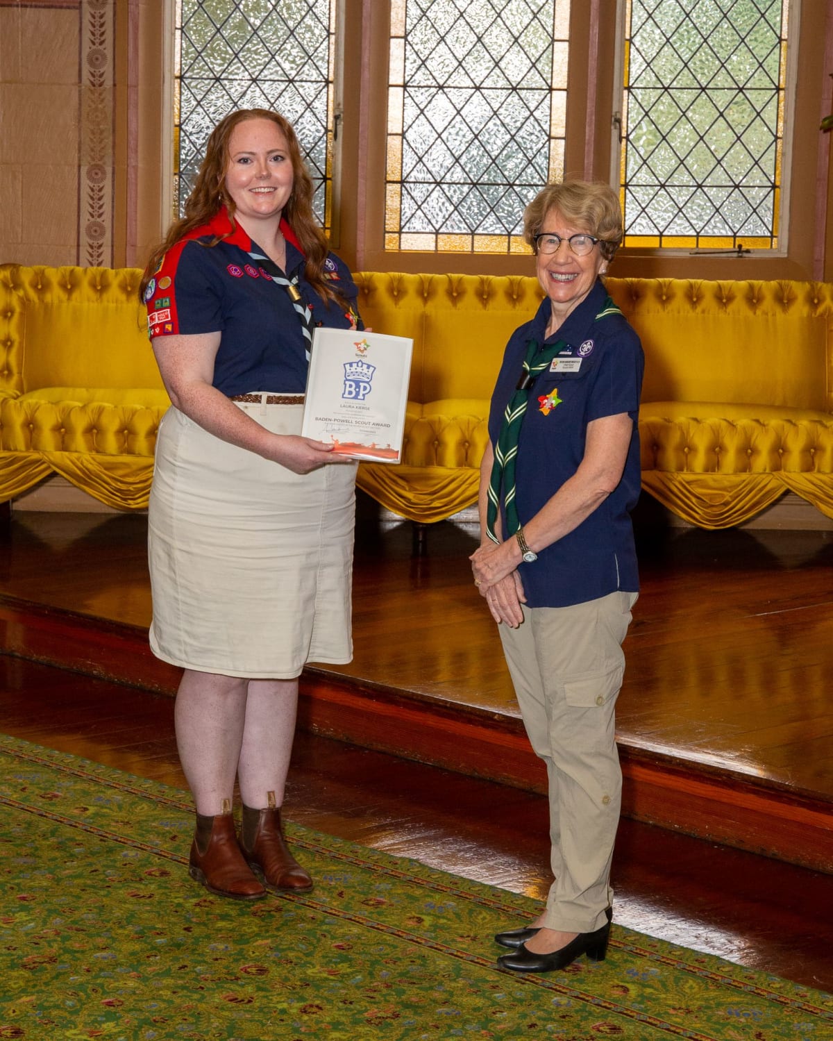 Laura, 27, has been presented her Baden-Powell (BP) Scout Award at Government House by Her Excellency the Honourable Margaret Beazley.