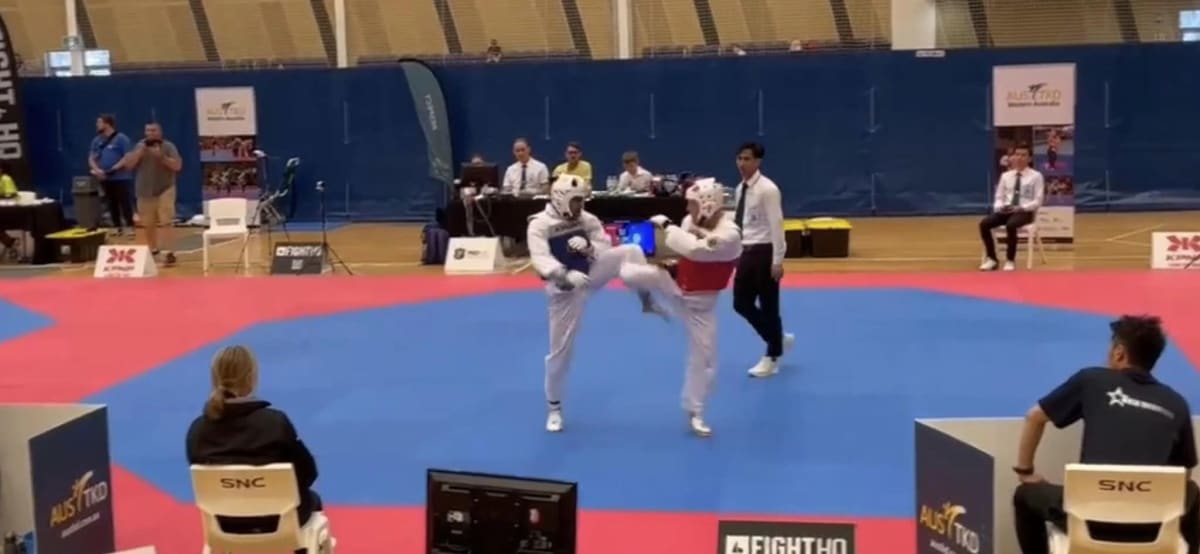 Competing in Perth in October, he won two gold medals to become the Australian national champion in taekwondo fighting and the Australian national champion in taekwondo poomsae in his division.