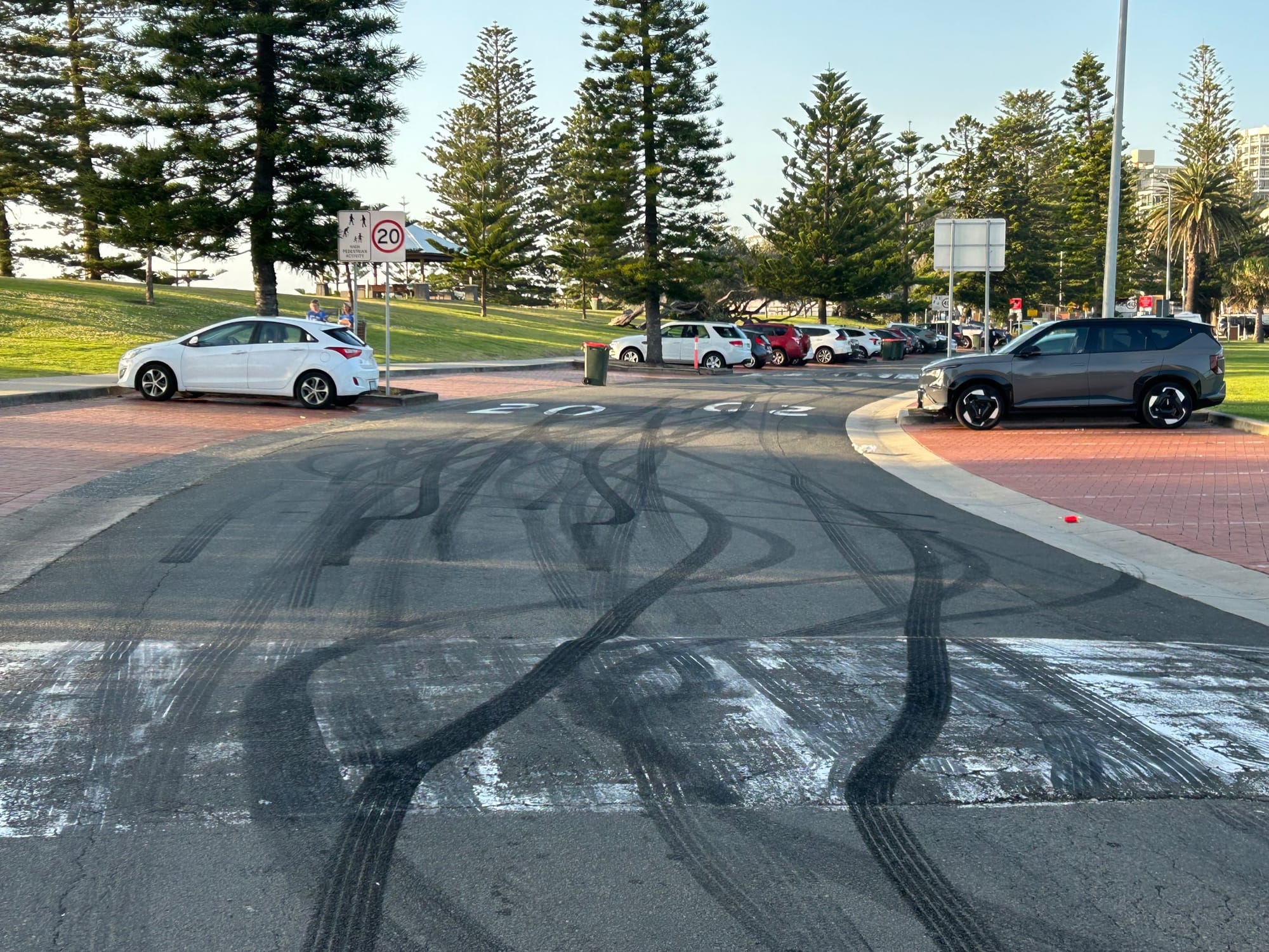Now the cameras have been removed, the hoons are back, regularly burning rubber, performing burnouts and donuts on the road surface between the Novotel and the Lagoon Restaurant. The noise is disturbing residents of North Wollongong and the tyres are leaving rubber scarring over several hundred metres of bitumen.