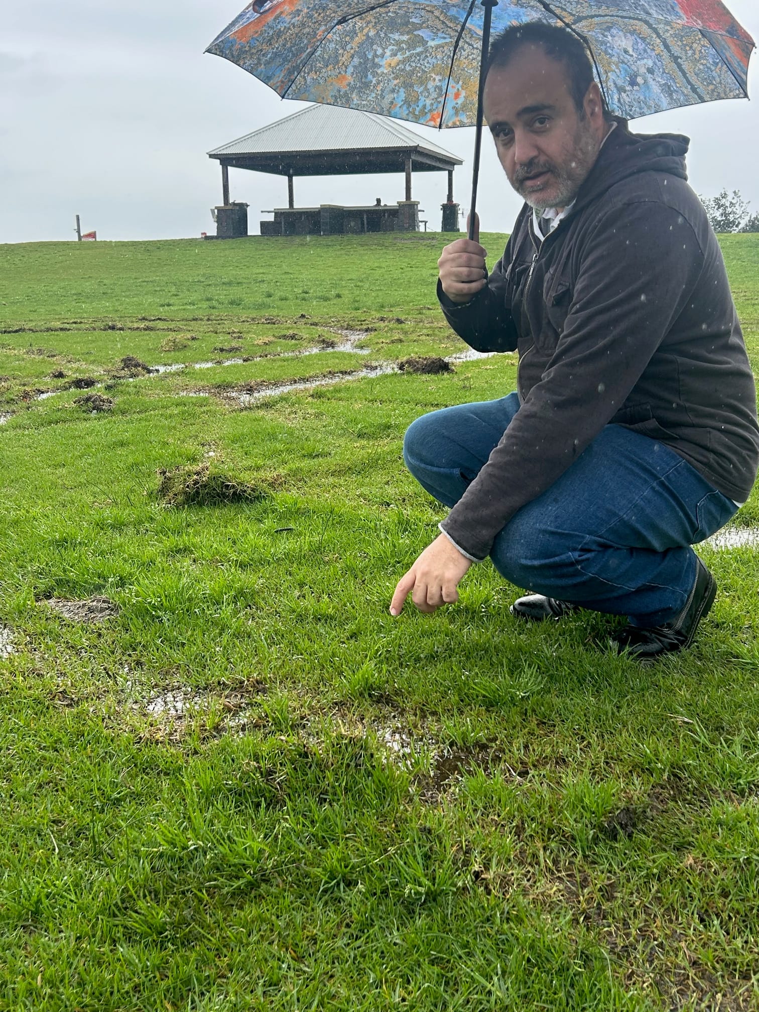 Cr Andrew Anthony points to the damage done earlier this year