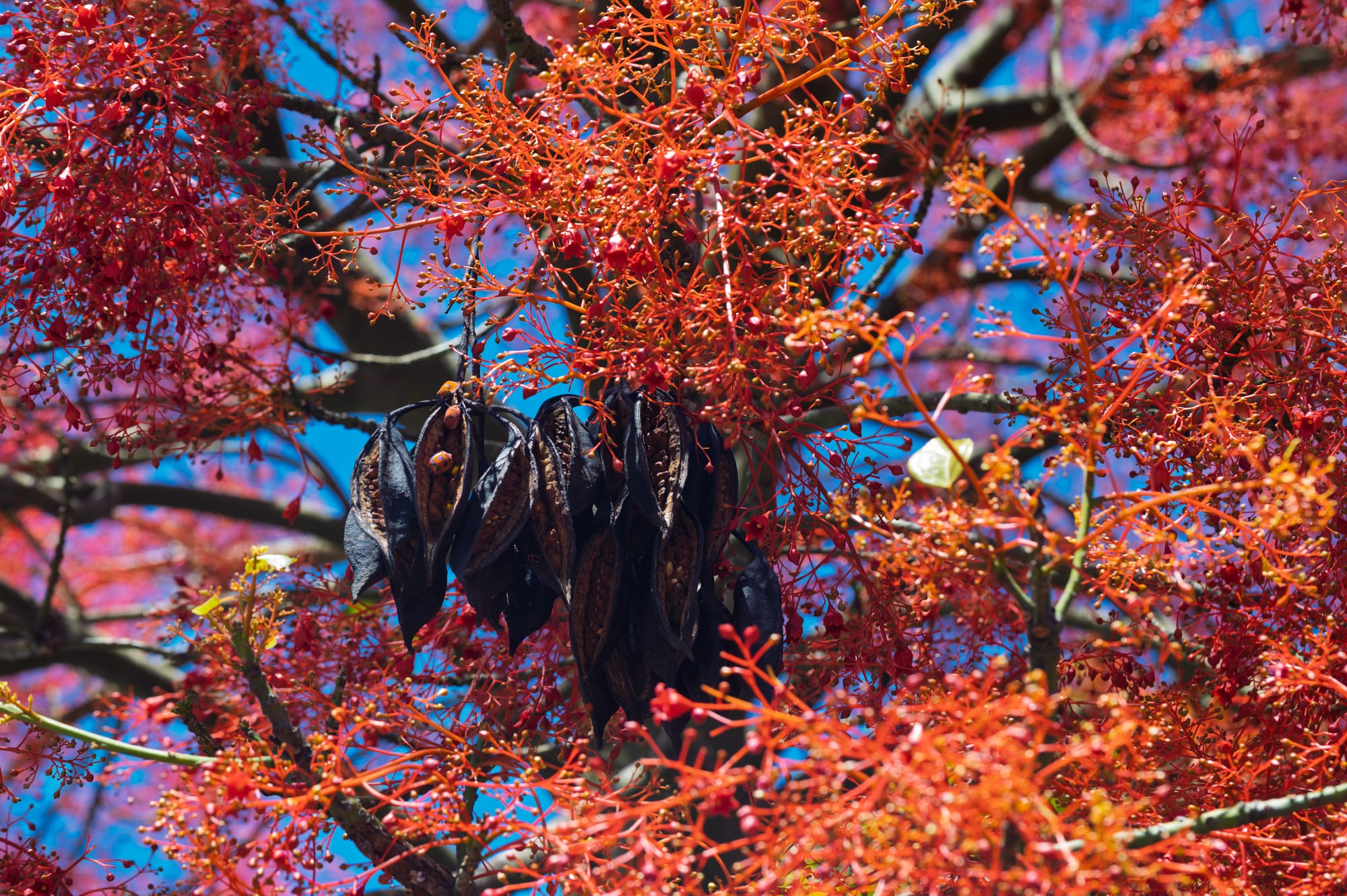Flame Trees produce tough dark-brown seed pods. Photos: Tyneesha Williams