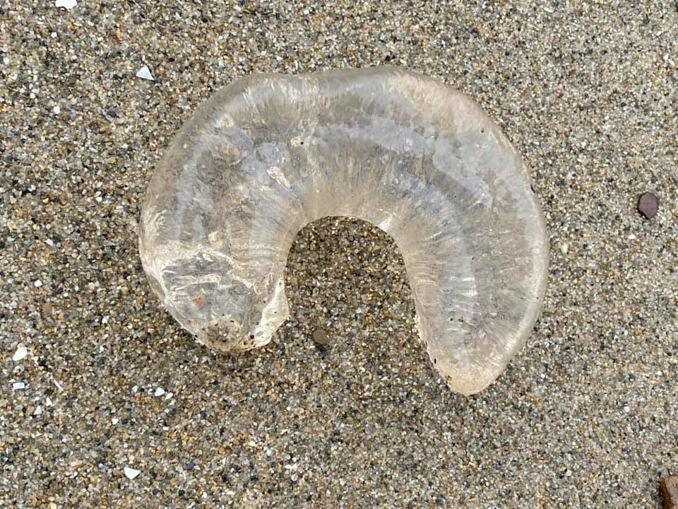 The female moon snail snail lays her eggs at night, in a jelly-like substance and this absorbs water and swells up, protecting the thousands of tiny eggs inside. If you pick up the egg sac and hold it up to the light, you might even be able to see the tiny pin-prick sized eggs inside.