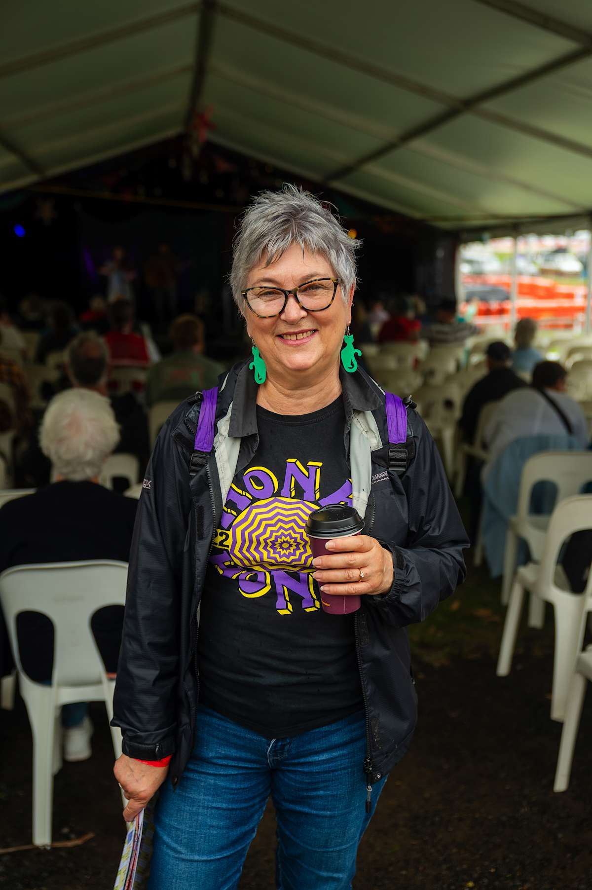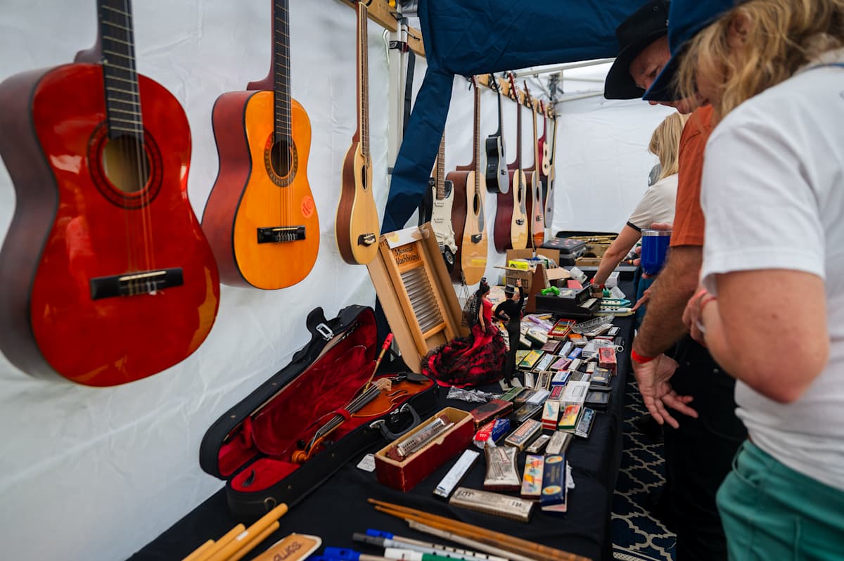 “Most of my stuff comes from my mum and sisters in England, and I have to send koala backpacks and ugg boots and things over there in return. The musical instruments are popular today because we’re at a music festival. We only do about four festivals a year, and this one’s not too far to drive. I don’t bring things here to make a lot of money, I bring them because I’ve collected more than I can fit in my house. Being a musician myself, I want other people to play and join in with other folks, so I’ll sell them a $10 guitar rather than a $100. I’m just here to have a nice time.”