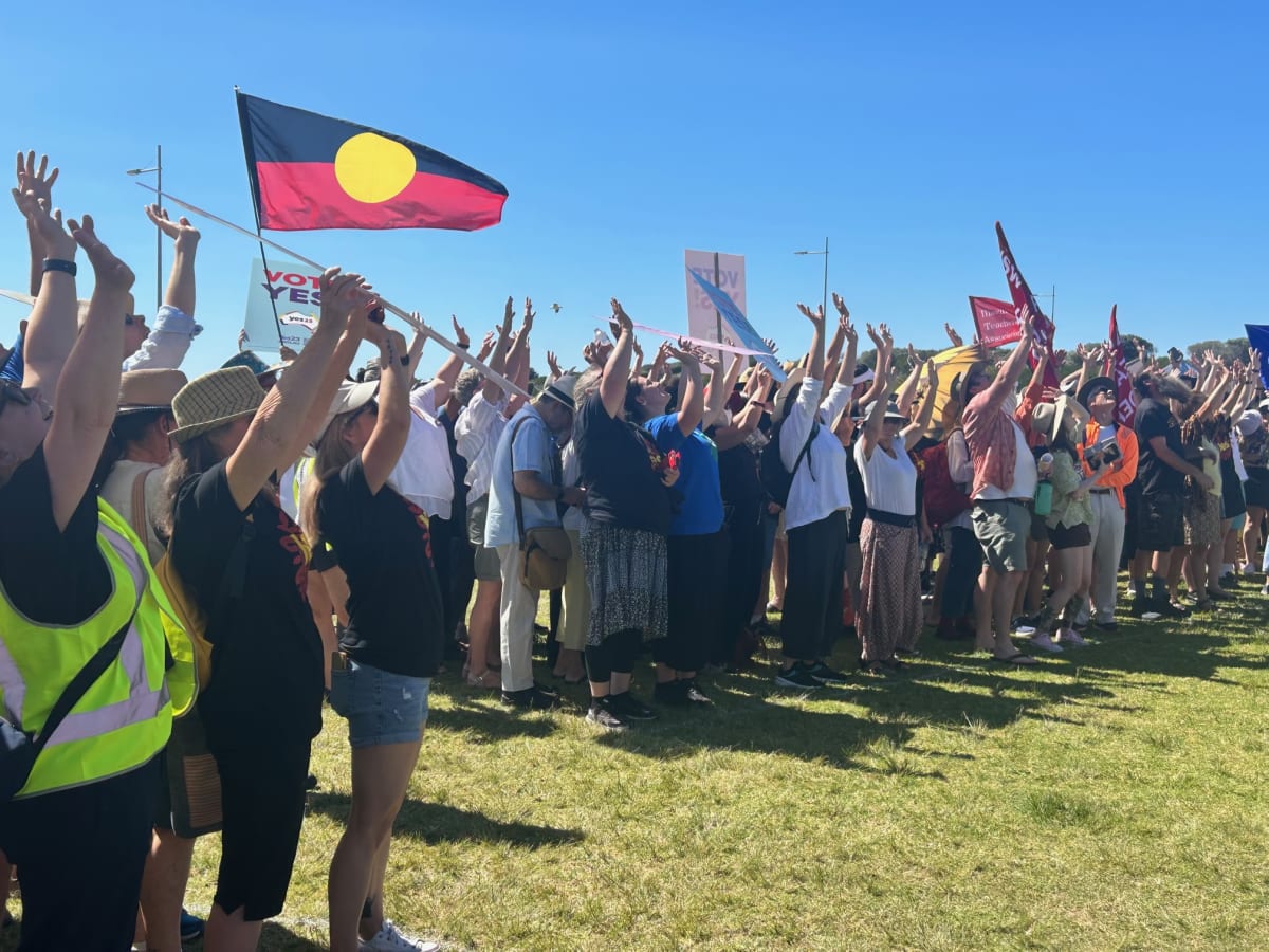 Indigenous leader tells huge Yes Voice rally the racism must stop