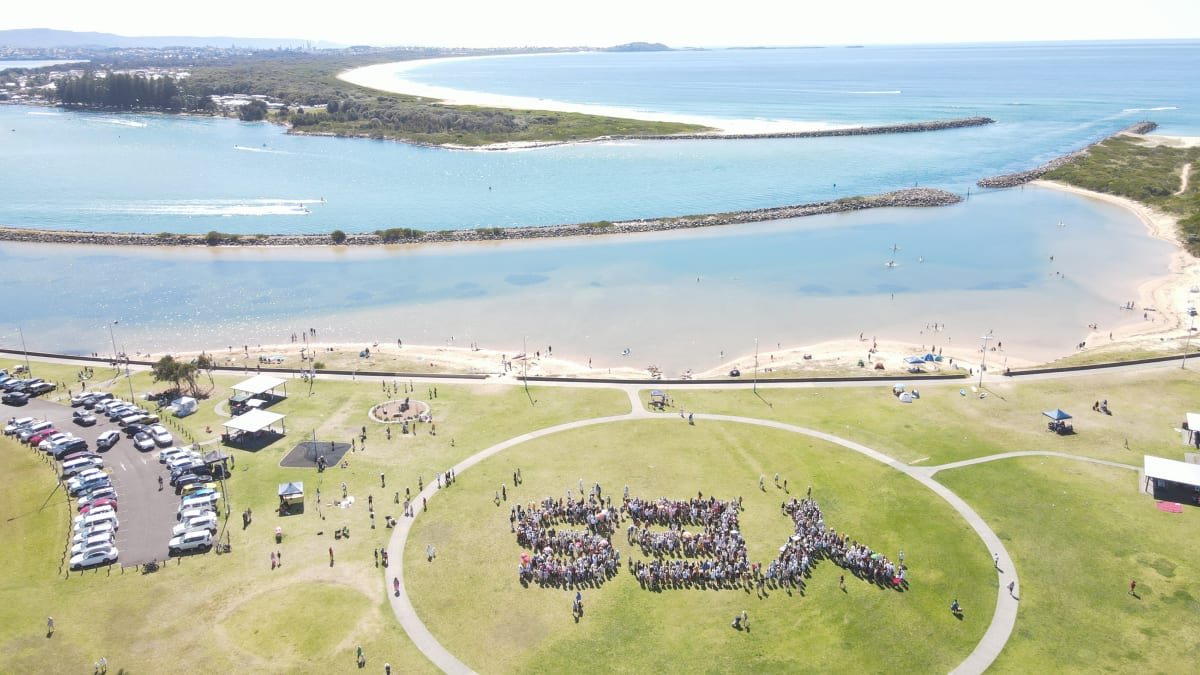 The big crowd was entertained by the newly created Wollongong for Yes Choir before creating a giant human YES in the parkland.