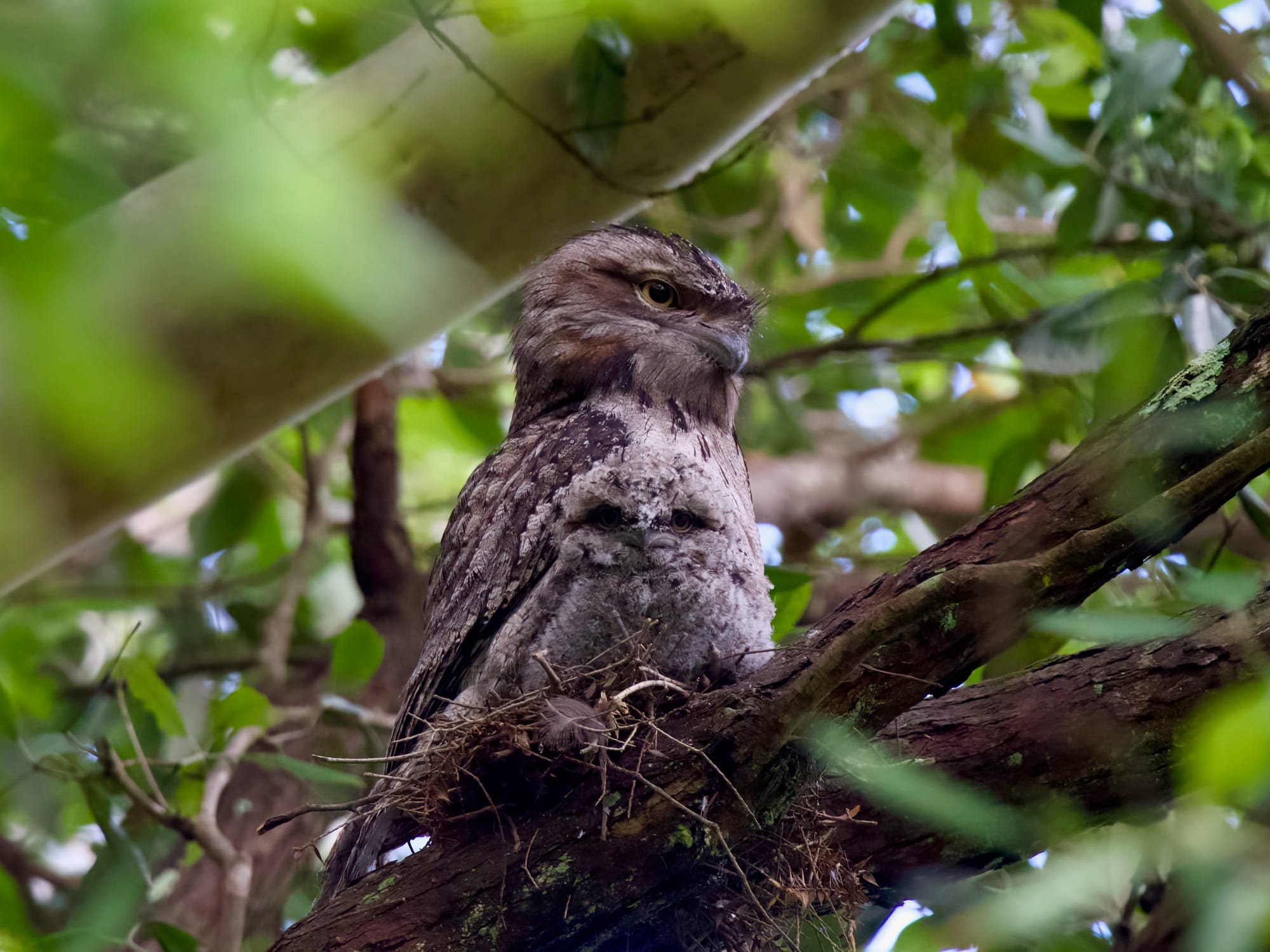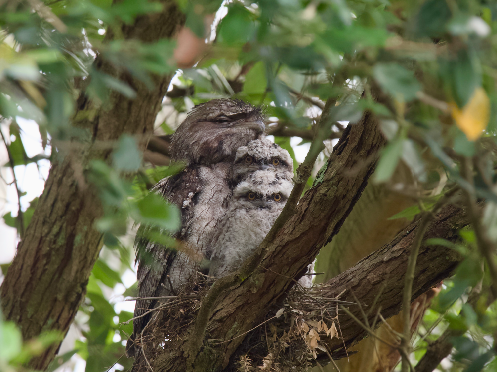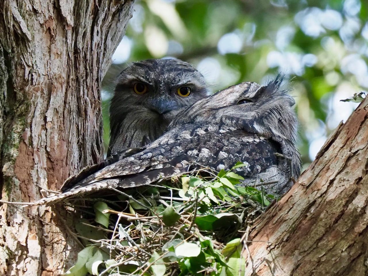 Right now, we’re in the thick of tawny breeding season, which runs from about August to January. Our backyard pair – and they’re a real pair as tawnies mate for life – always move across the road to the same spot to nest, high up in the eucalypt canopy. Now, I love these birds but it has to be said, they’re terrible nest builders.