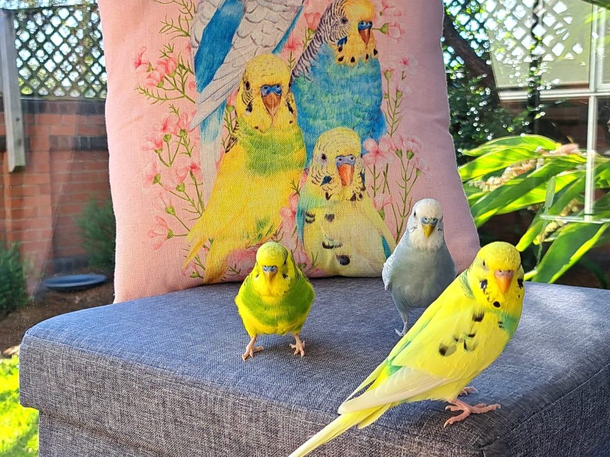 As the boss she’s worked hard to foster great relationships, giving all three free rein of the house while she’s working, providing them with native plants to enjoy and not minding the little bit of chaos they bring as they do laps around the place. I should probably point out that I’m referring to her much-loved sources of inspiration, budgies Barley, Farro and Buckwheat.